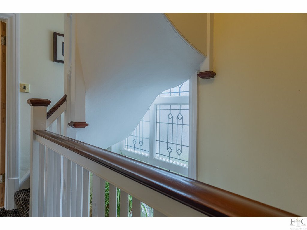 The graceful staircase rises from the hallway to a beautifully light first floor landing, where a large characterful window introduces the quality and period feel that flows throughout the upper floors.