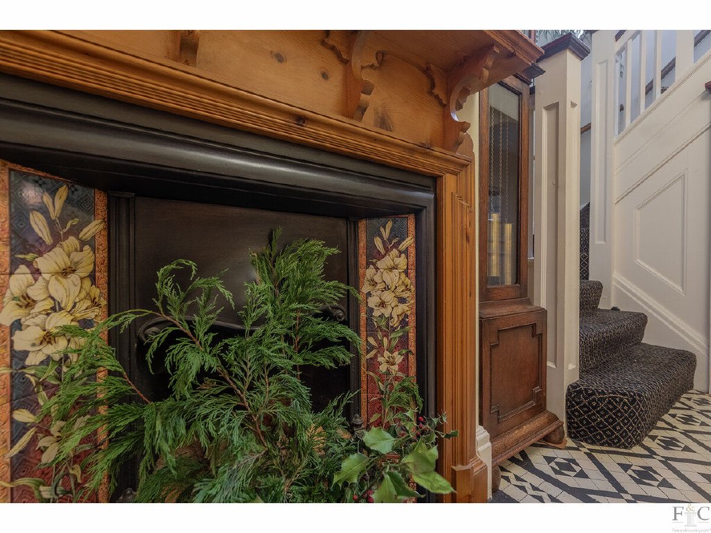- Grand hallway with encaustic tiled flooring and open fireplace