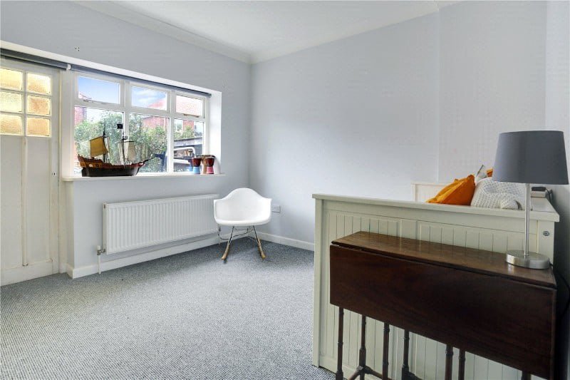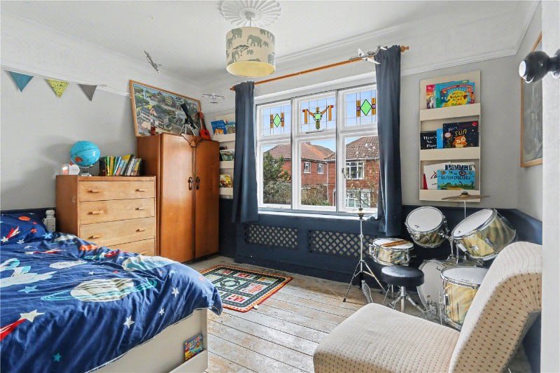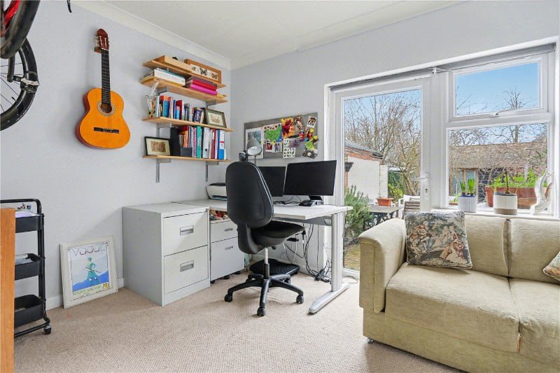 Versatility continues with a playroom/spare bedroom featuring a period door, wooden double glazed window, built-in desk and shelving, and floor-to-ceiling cupboards which discreetly house the combi boiler serving the central heating and hot water. The former annexe could well be returned for those looking at multi-generational living.