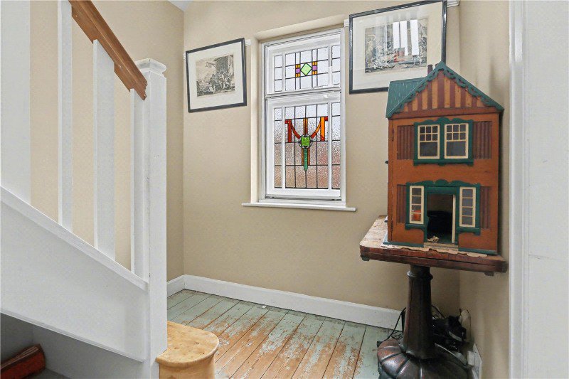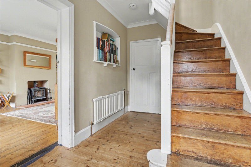 Step inside and you are immediately struck by the balance of period elegance and contemporary craftsmanship. Original wooden frames with stained glass detailing remain proudly in place to the front elevation. Throughout the first floor, elegant panelling enhances the sense of heritage, while a replica staircase with oak handrail and sweet chestnut risers and treads mirrors the home’s original character beautifully.