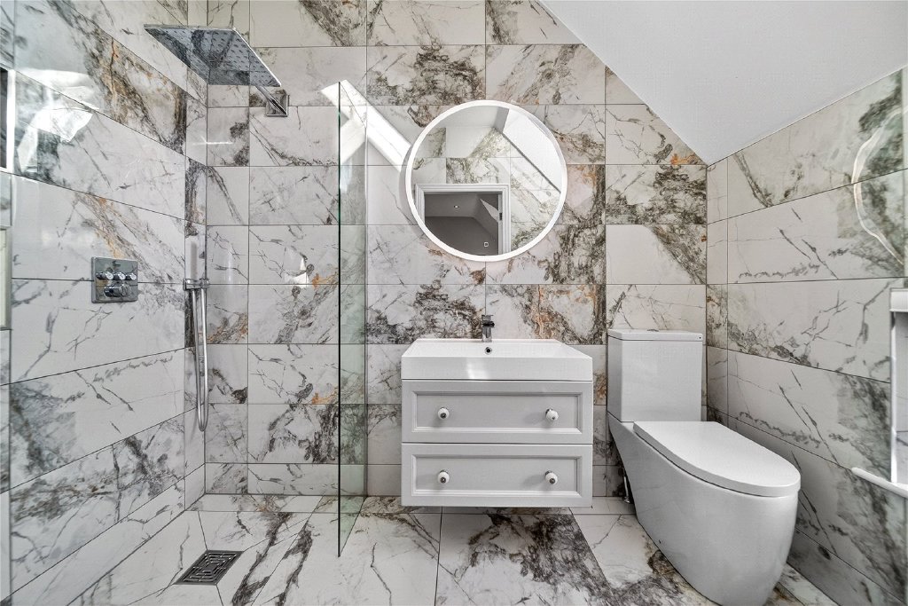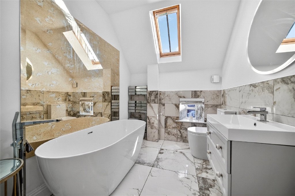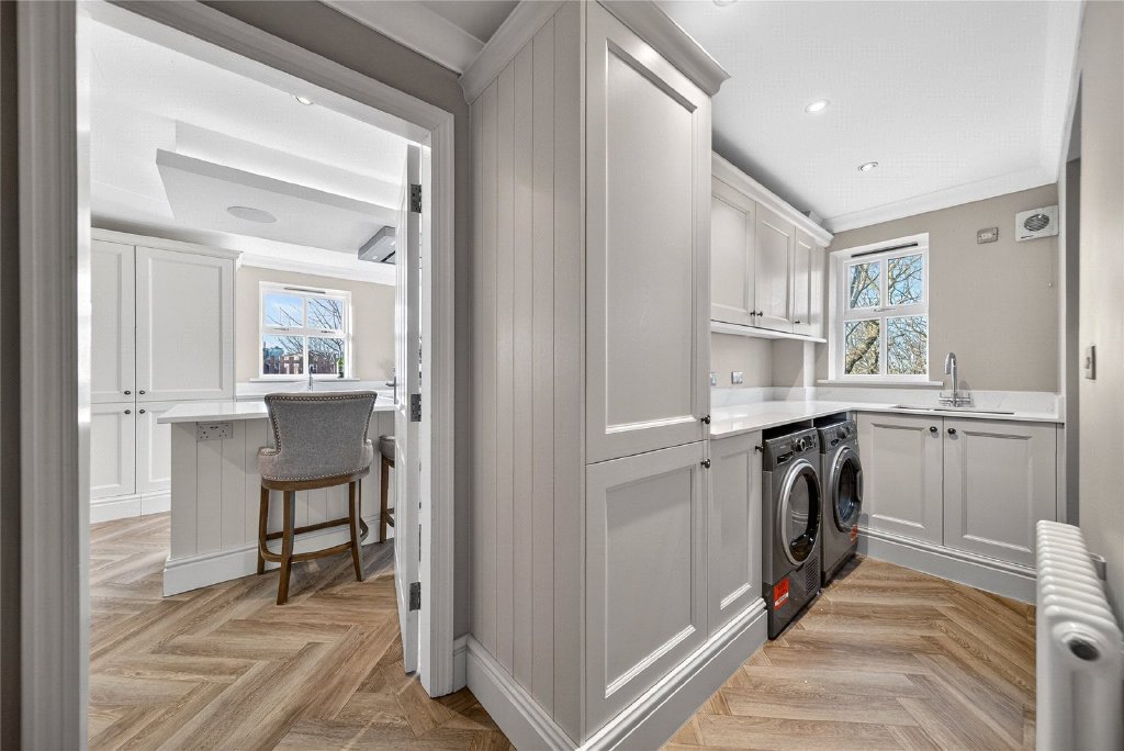 Upstairs, the sense of quality continues. The principal bedroom is a generous double, complete with a stylish en suite bathroom fitted with contemporary fixtures. Bedroom two also benefits from its own en suite, while bedroom three is another well-proportioned double room. Bedroom four has been transformed into an elegant dressing room with extensive fitted storage, but could easily revert to a bedroom if required. A beautifully appointed family bathroom completes the first floor.