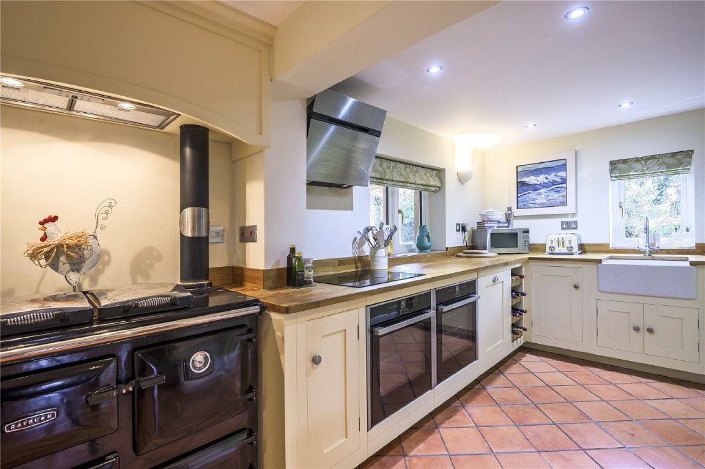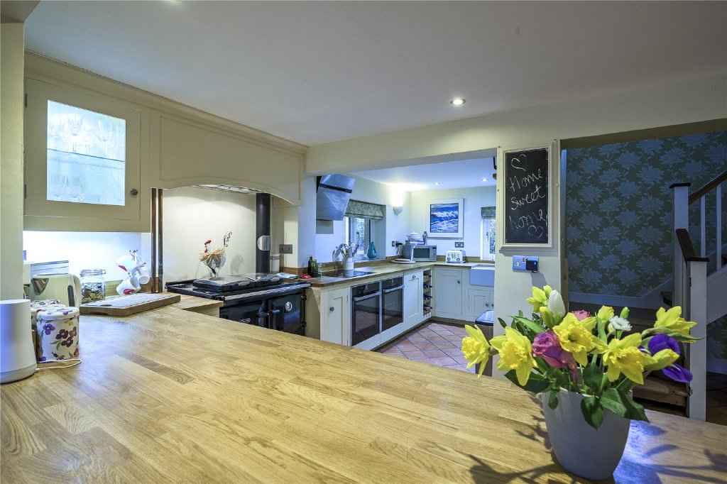 At the heart of the home is a welcoming open-plan kitchen / dining room with Rayburn and fitted cabinetry — a warm, sociable space ideal for family life and entertaining.