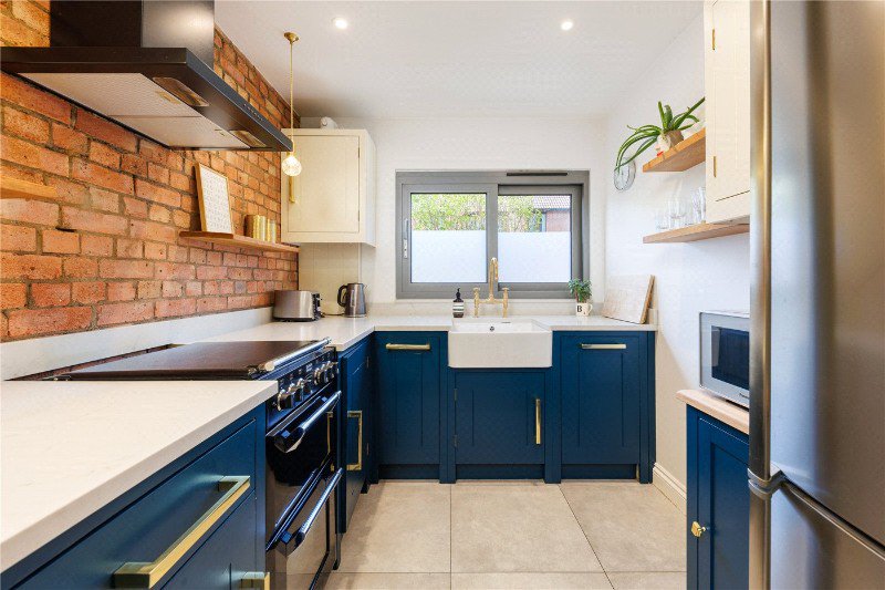 The second floor provides two further double bedrooms, one benefitting from well-designed built-in wardrobes and a sleek modern en suite shower room.