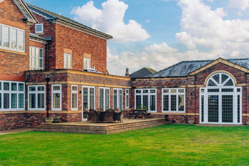 Approached via a sweeping driveway, the property immediately conveys a sense of prestige, charm and arrival. The grounds extend to approximately half an acre, featuring mature gardens, manicured lawns and multiple seating areas.