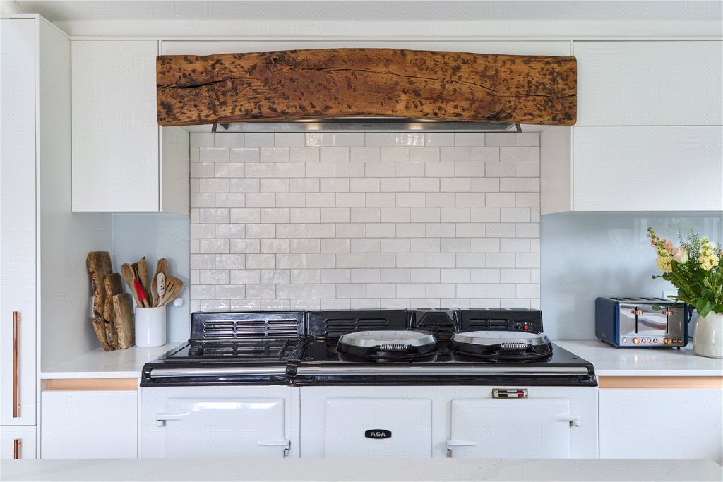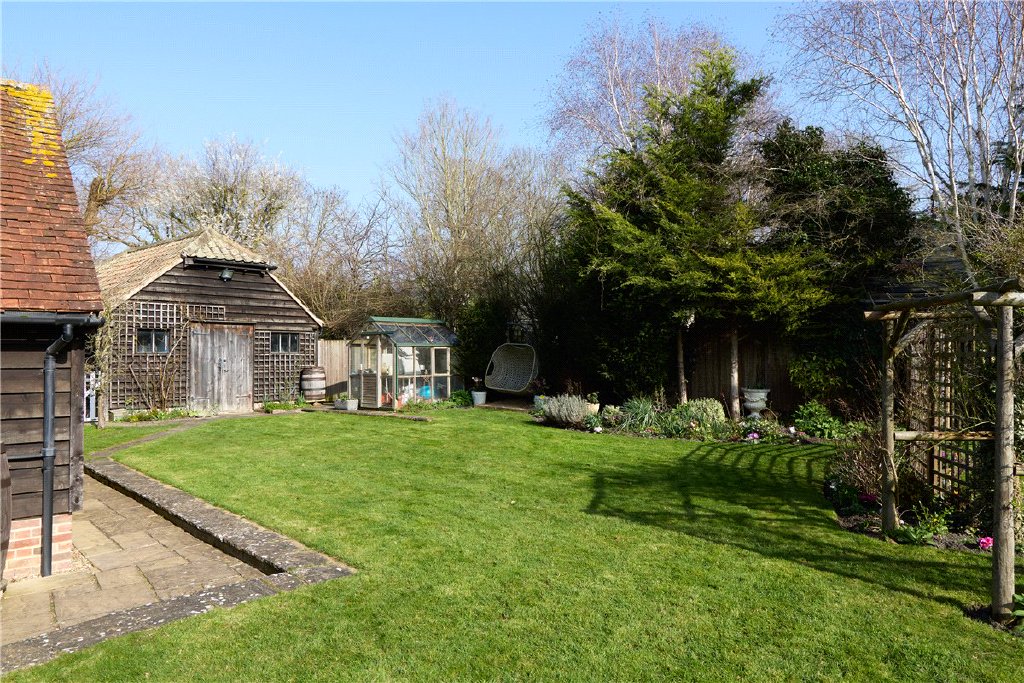 The Old Bakery is idyllically positioned, tucked away off to the side of the village green with pleasant views across the cricket pitch to the popular Cambscuisine pub, The Royal Oak (a few minutes’ walk from the house across the green). It is approached via a shared lane leading to the gates of the house. Entering into the driveway, there is ample parking and access to the garage and carport. The front aspect enjoys a lawned front garden enclosed with a white picket fence. The rear garden is beautifully maintained; predominately lawned with several paved seating spaces and a wonderful selection of established plants, trees and shrubs throughout.