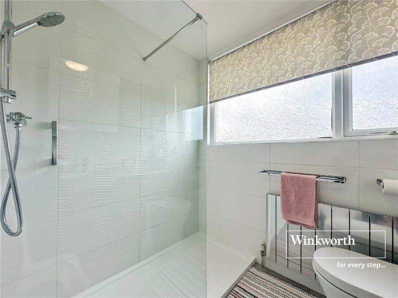 Upstairs the very spacious landing has a range of built in storage, the bathroom has a double walk in shower, hand basin and wc and the largest of the two double bedrooms has built in wardrobes, the second double bedroom has plenty of space for furniture and excellent eaves storage.