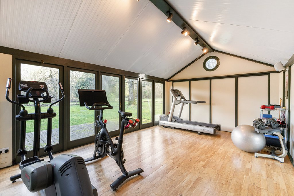 - Wraparound hardwood terrace and timber framed outbuilding with electricity, currently used as a gym