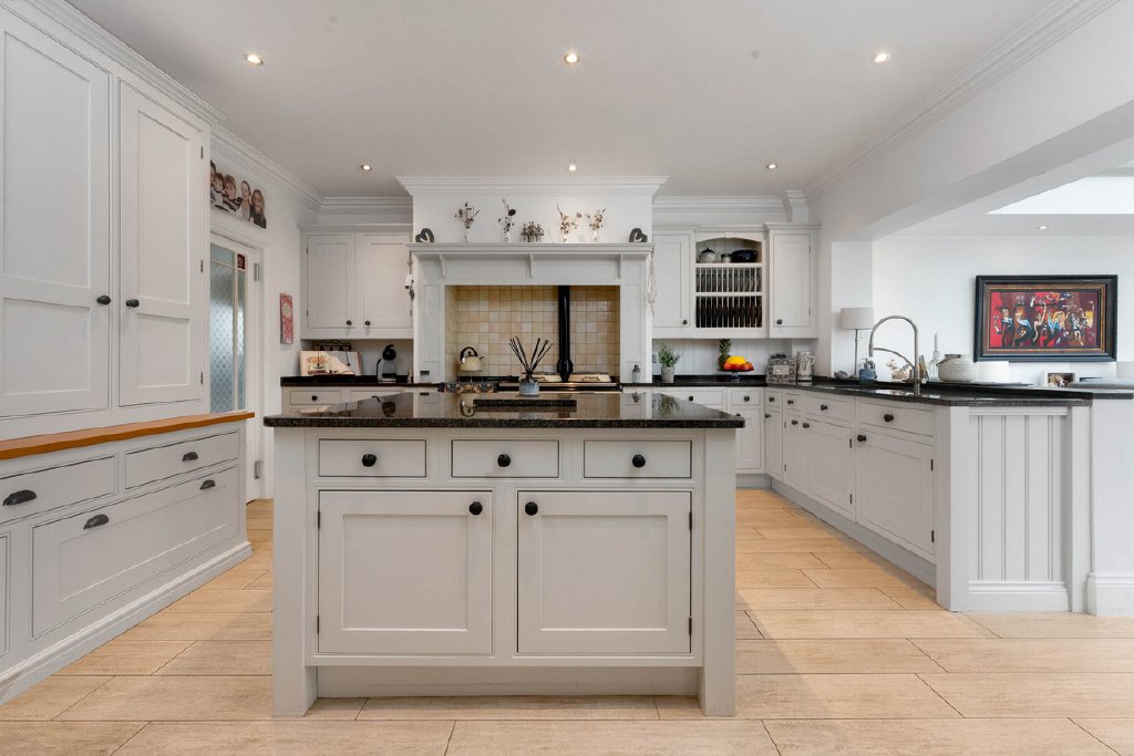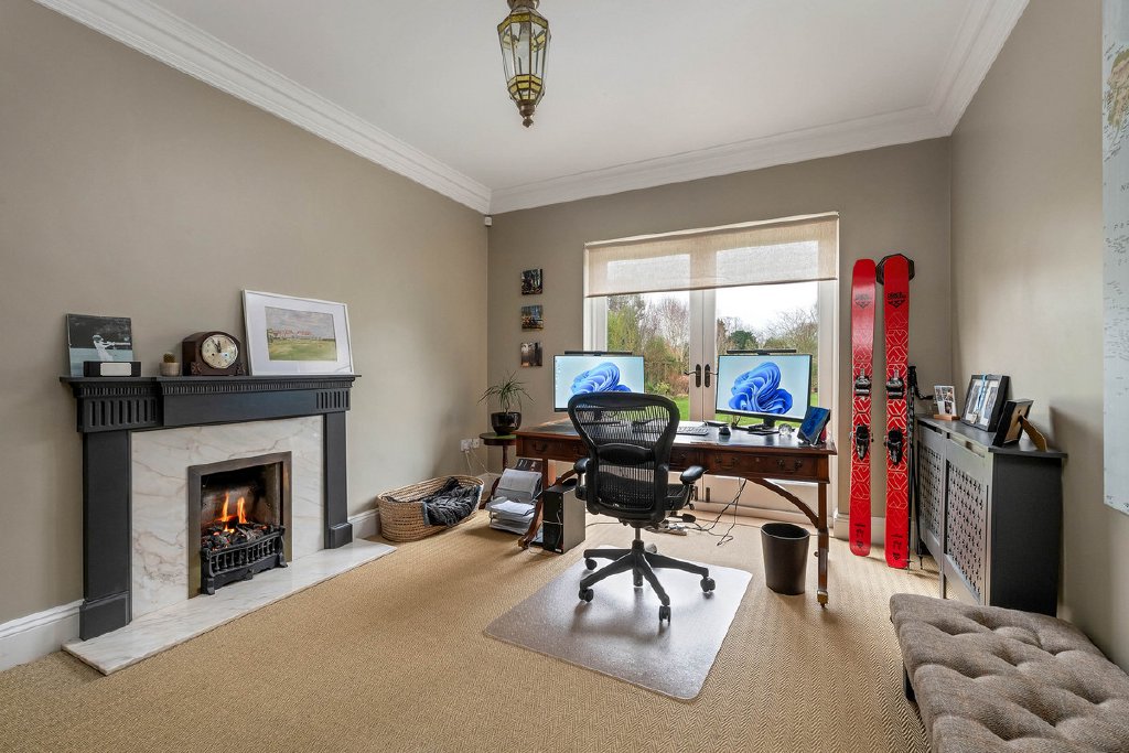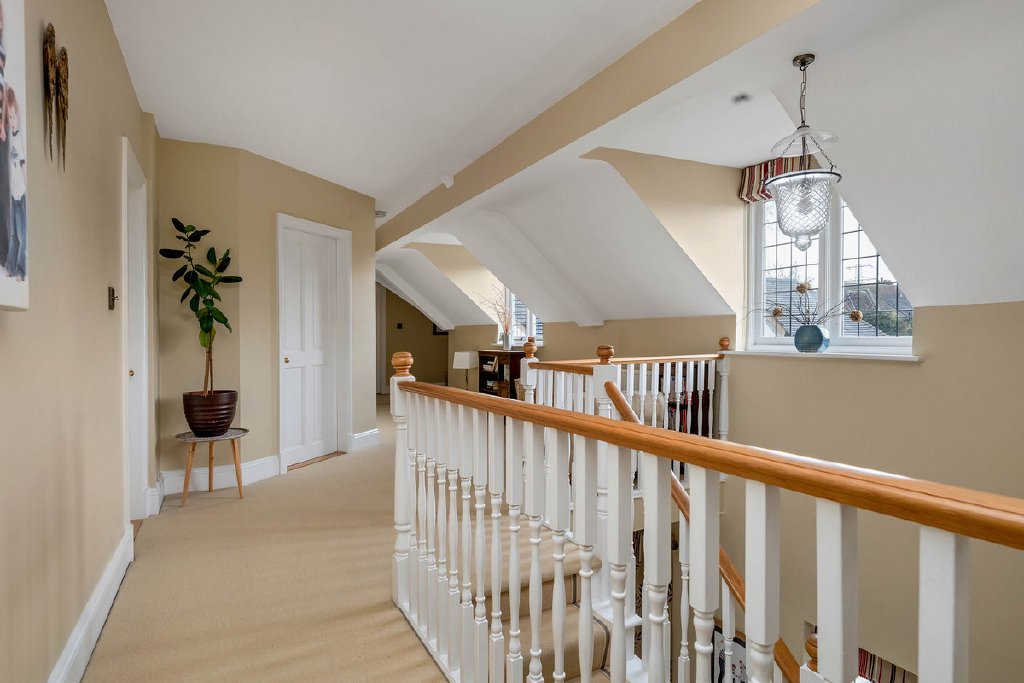 The property is entered through a heavily glazed, oak framed porch into a broad reception hall with return staircase with Louis De Poortere stair runner. Off the hall is a cloakroom and double cloaks/shoe storage cupboard. The kitchen which is beautifully fitted includes a snug, fully glazed orangery and three sets of bi fold doors provide direct access into the rear garden. Flooded with natural light, the kitchen itself is fully bespoke. The cabinets are hand painted under oak and granite worksurfaces and a heated tiled floor by Floors of Stone extends throughout. In addition to a range of integrated appliances the kitchen features a gas fired Aga with overmantel, pantry cupboard and leading off is a fully equipped utility room with Belfast sink and walk-in pantry. The orangery was hand drafted by Buckinghamshire based Country Hardwood projects and is considered the jewel in the crown. Under a fully glazed roof with electric roof lights the orangery provides panoramic views of the garden and is the perfect space for family and friends to dine and relax. The adjoining home office and sitting room both enjoy a private, south westerly aspect and French doors from both rooms open out into the rear garden. The sitting room features an inglenook style fire with inset multi-fuel stove. A further reception room and ground floor bedroom five with en suite completes the ground floor accommodation.