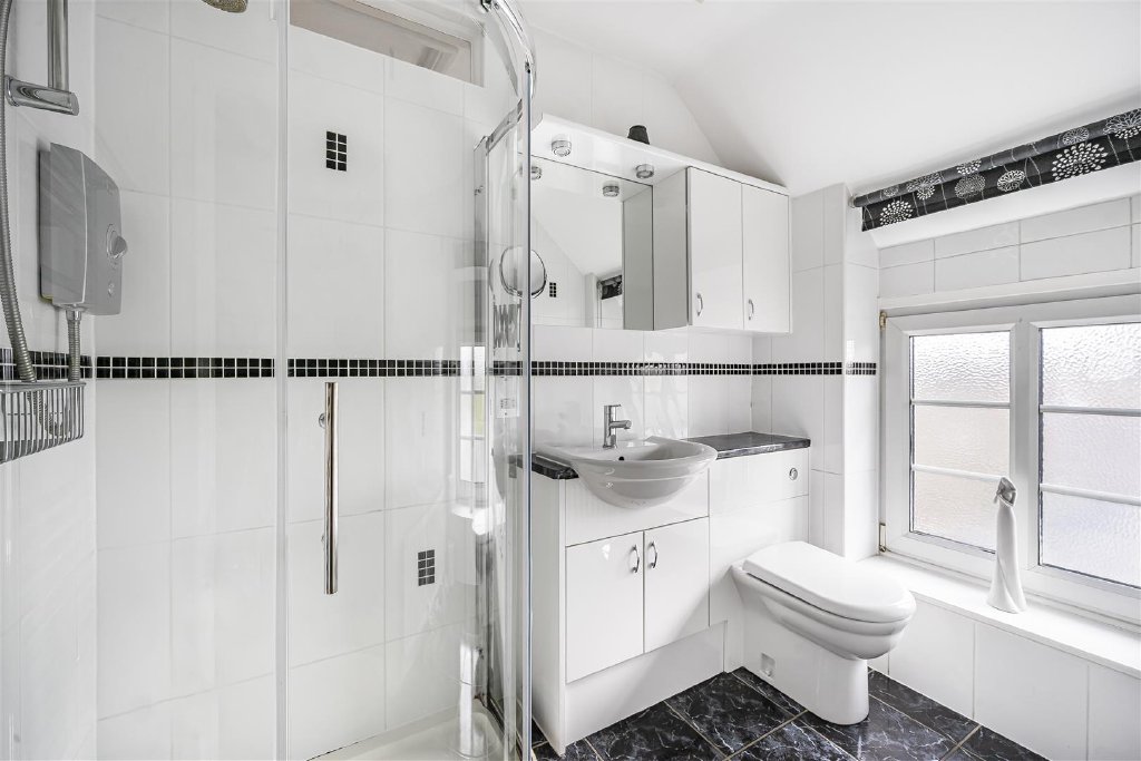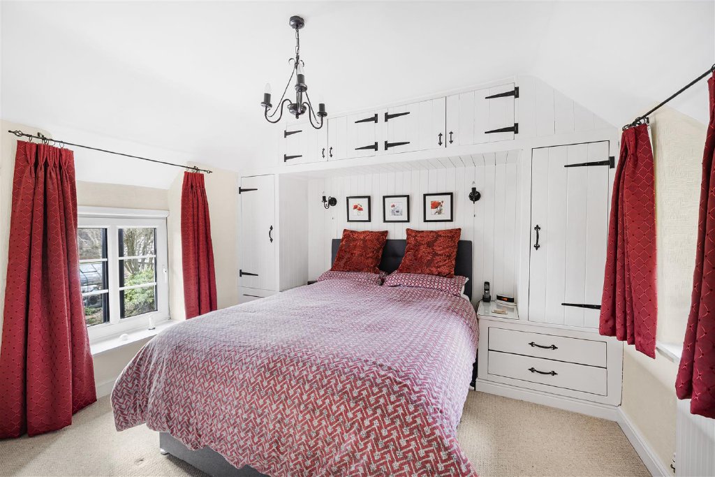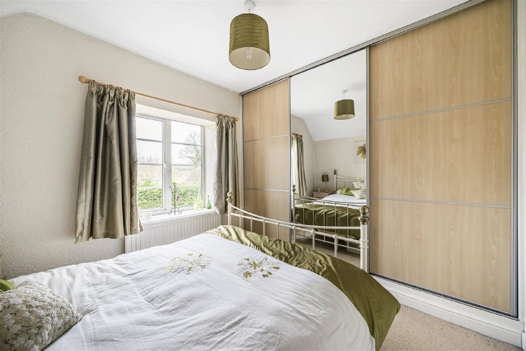 The master bedroom enjoys views over the garden, and benefits from having an en-suite shower room.