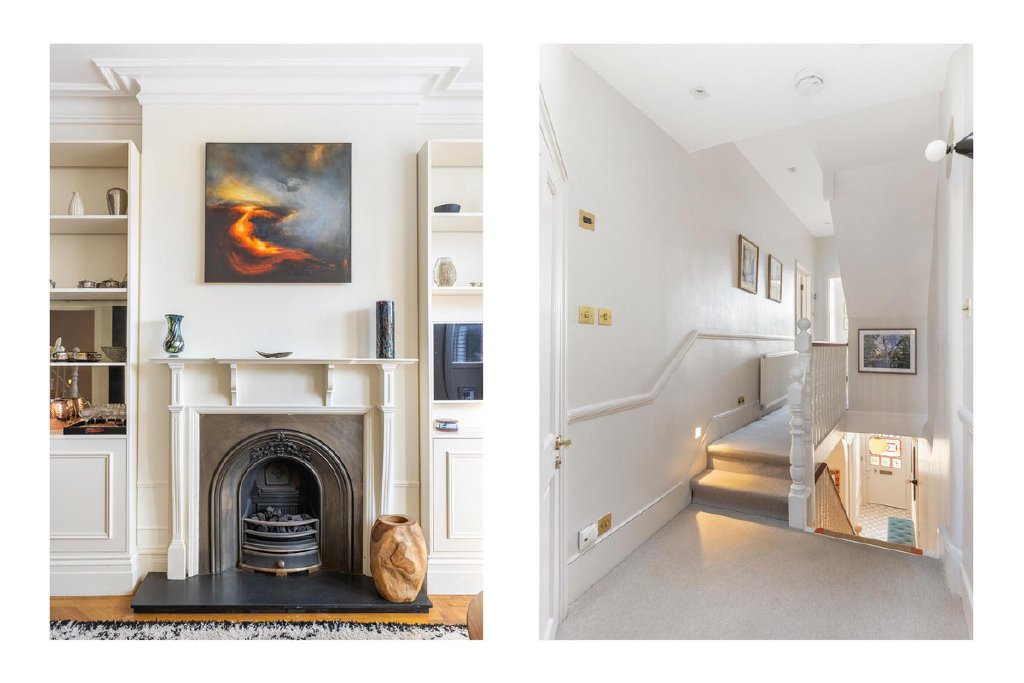 Upon entering, a gracious and welcoming hallway sets the tone, rich in character detail and providing access to the cellar. The handsome double reception room is of particularly fine proportion, adorned with two striking period fireplaces and offering an ideal setting for both formal entertaining and relaxed family living. A contemporary shower room can also be found on the ground floor.