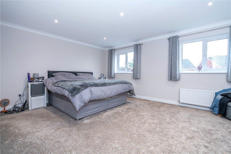 17' x 13' a superb principal suite entered via the DRESSING ROOM with dual hanging and bespoke shelving, the bedroom enjoys dual UPVC windows to the rear aspect, radiator, power points and ceiling spotlights.