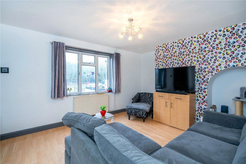 15’8 (max) x 11’9 a bright reception room with UPVC window to the front aspect, feature recess for open fire (unchecked) radiator, power points, TV point and wood effect flooring.