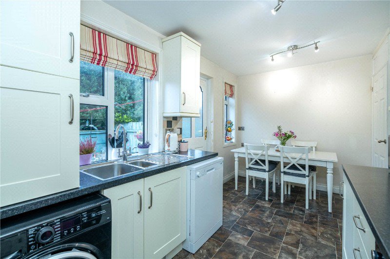 13’7 x 7’11 another light space with dual UPVC windows to the rear aspect and part glazed door on to the rear courtyard and gardens beyond, comprising a range of base and eye level storage units, incorporating roll edge work surface with 1 ¼ sink inset, integrated double oven and four ring gas hob, plumbing and space for washing machine, plumbing and space for dishwasher, concealed boiler (replaced 2023) understairs storage cupboard, tiled effect flooring and power points.