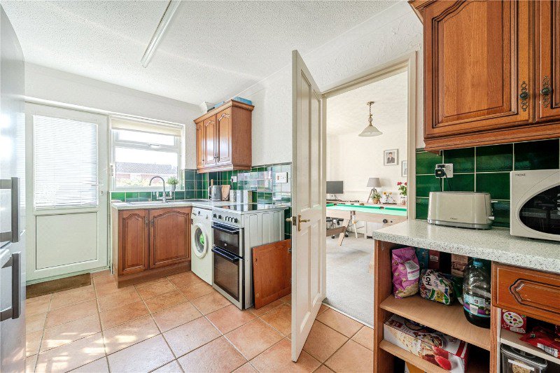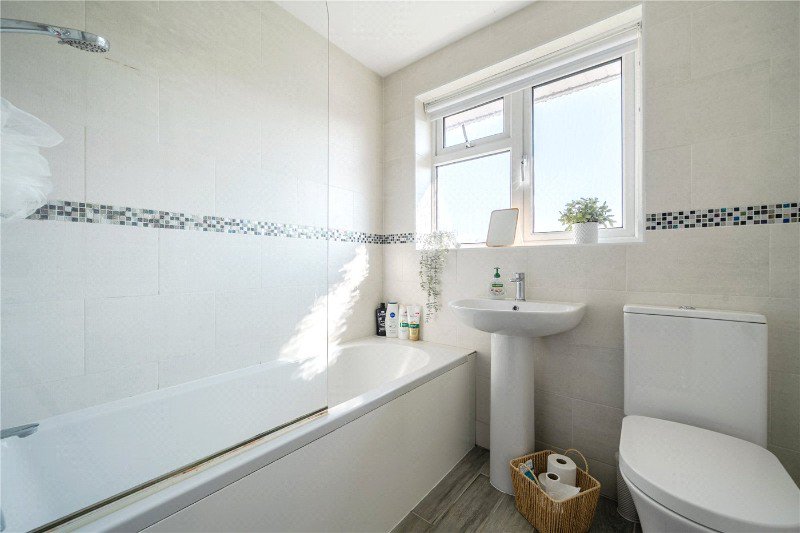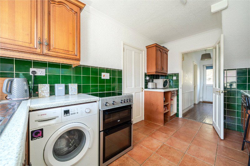 The accommodation is thoughtfully arranged and well-presented throughout. A spacious entrance hall leads into a spacious dual-aspect sitting/dining room, featuring an attractive gas fireplace that creates a focal point. A door from the lounge opens onto a small sunny patio. The well-equipped kitchen offers ample storage and workspace, with a door providing direct access to the rear garden. Upstairs, the first floor comprises two generous double bedrooms, both benefiting from built-in wardrobes, along with a third single bedroom. The contemporary family bathroom is fitted with a modern suite and features a shower over the bath.