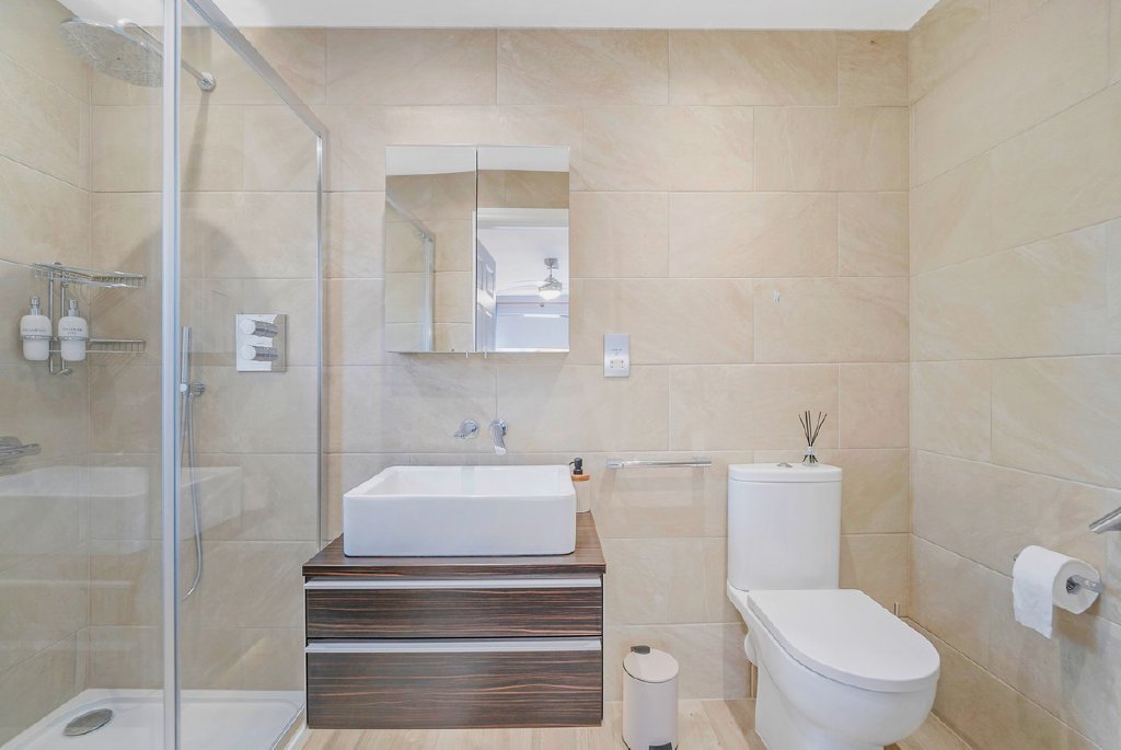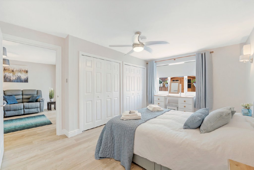 Leading from the main living space is a generous double bedroom with two large built in wardrobes and an ensuite shower room fitted with quality Crosswater and Villeroy & Boch fixtures, completing this beautifully presented and self contained accommodation.