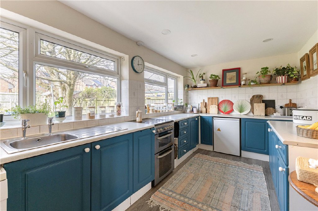 The house has a lovely feel to it and the spacious, light filled sitting room is centred around the fireplace. The playroom/dining room is of equally generous proportions, and both rooms lead through to the inner hallway, off which you can access the utility room and cloakroom. The kitchen is located at the rear of the house, overlooking the garden, and is fitted with a good range of units. The house does offer great potential to extend both to the rear and side, subject to obtaining the necessary consents.