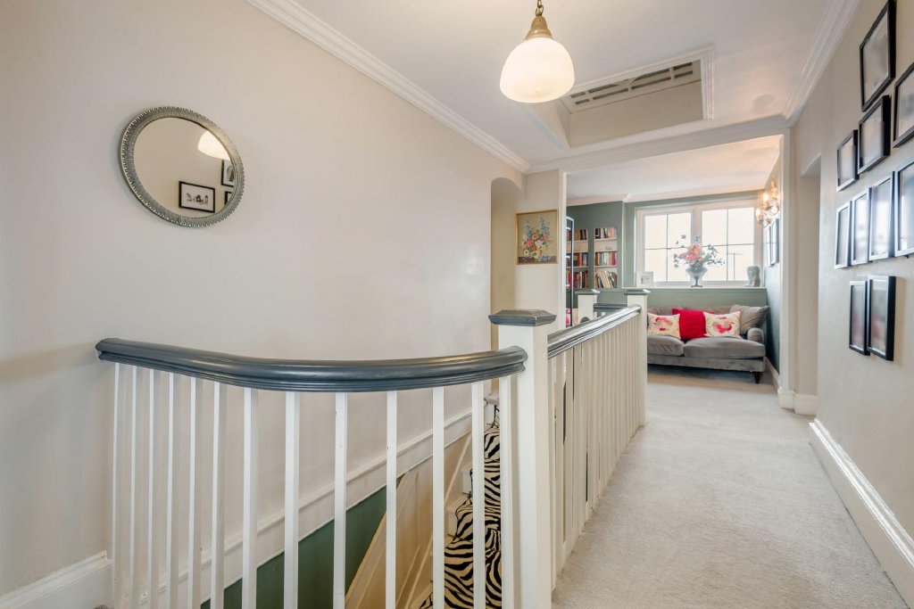 Stairs lead from the entrance hallway to a bright and spacious first floor landing, with an impressive feature skylight, refurbished original radiators, access to airing cupboard with two Viessmann boilers, fitted shelving and access to loft hatch with pull down ladder.