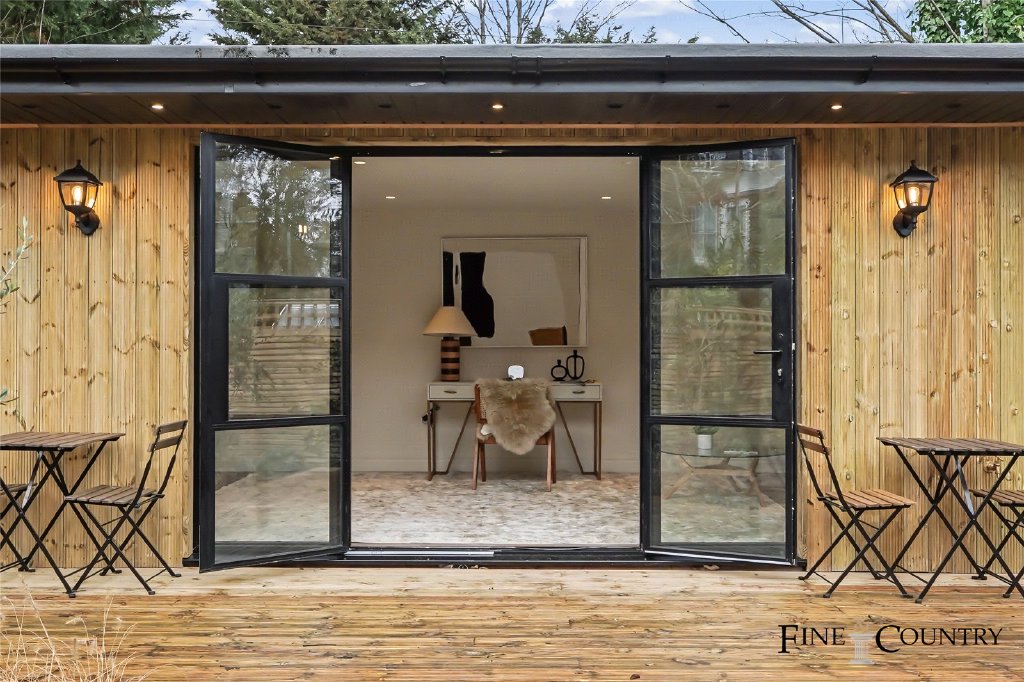The garden studio is constructed with full-height glazing and provides highly flexible additional accommodation suitable for use as a workspace, studio or gym.