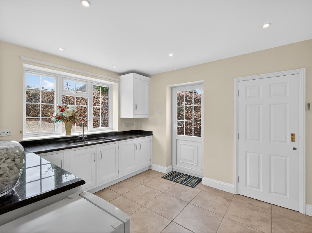 Just off the kitchen is a particularly generous utility and boot room, providing excellent storage and worktop space, along with direct side access to the outside — ideal after muddy walks or busy days outdoors. This room also connects directly to the double garage, ensuring that day-to-day living feels practical and well considered.
