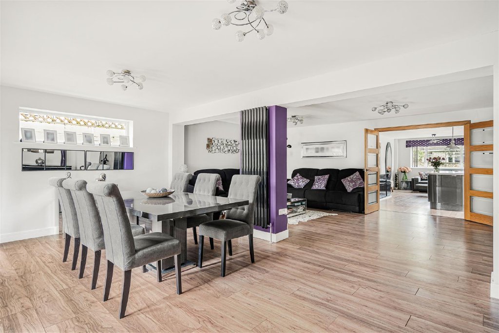 The sitting room and dining room offer huge flexibility for large gatherings and entertaining. With two sets of French doors leading to the garden, it also allows you to spill out onto the garden during the summer months.