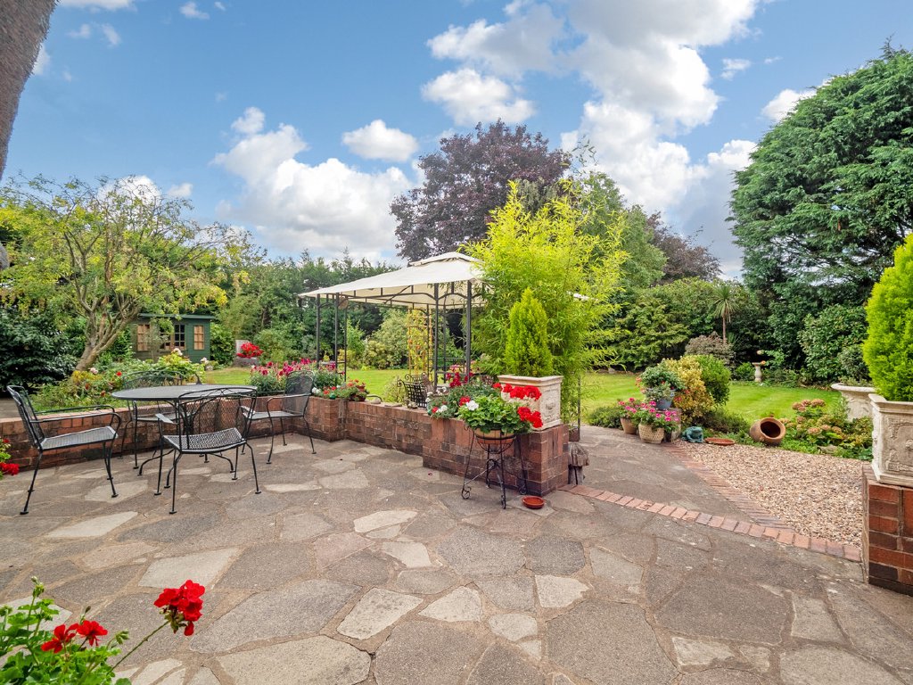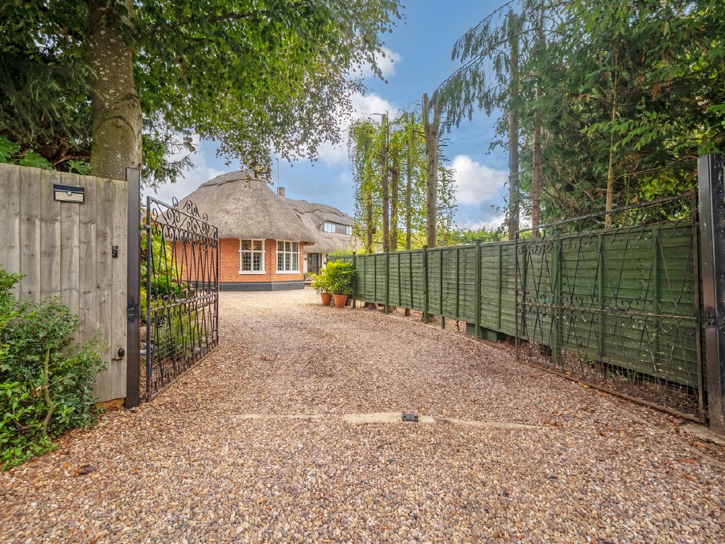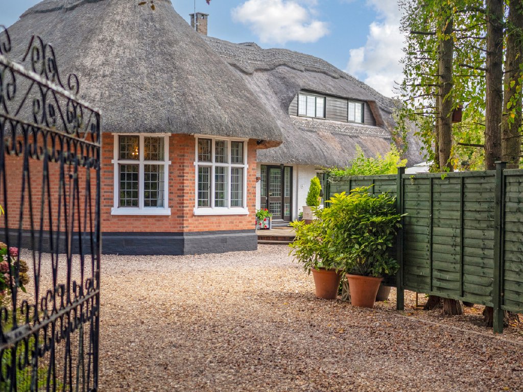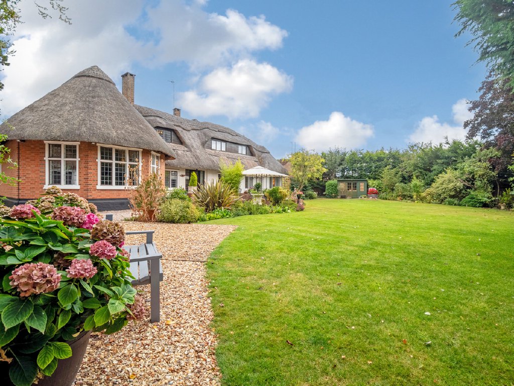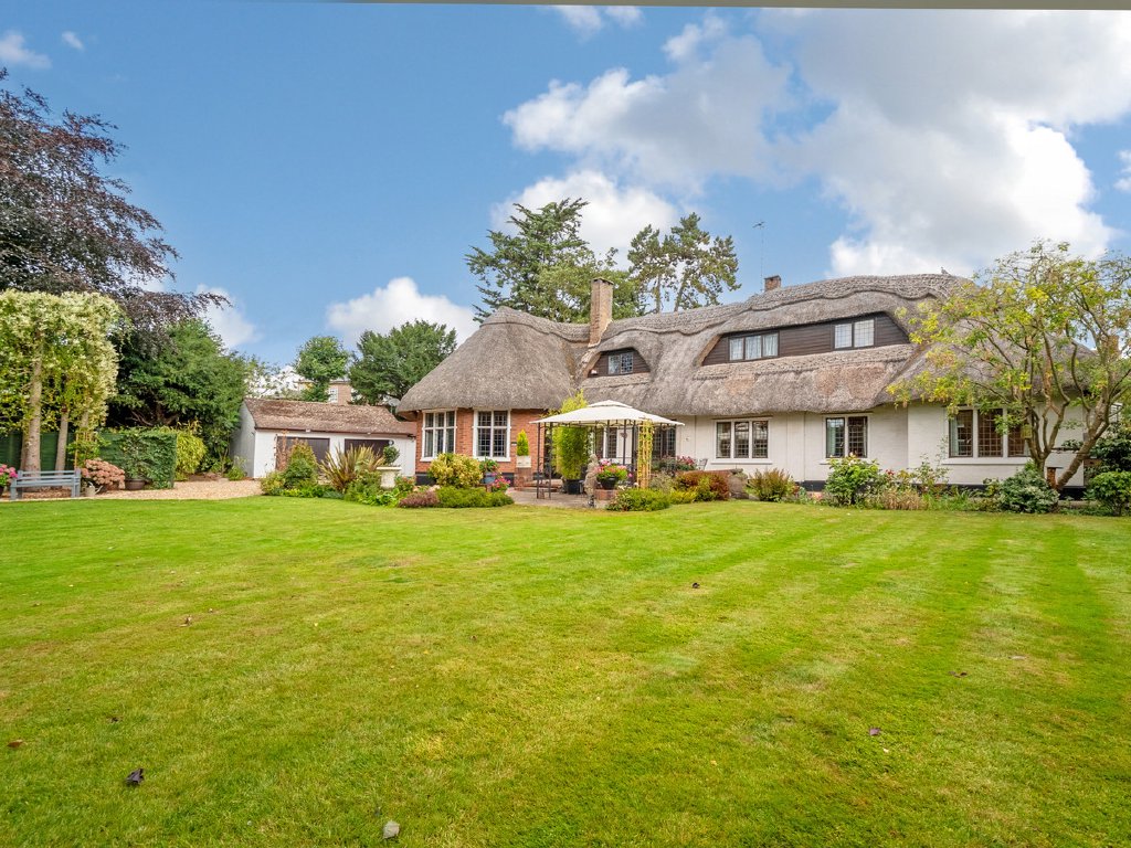 ‘Lane End’ is a charming, detached family home, dating back to the 1870’s with a later extension in the early 1900’s. The house has been greatly improved by the present owners, with stunning character features, particularly the stunning drawing room with its oak panelling and vaulted ceiling, and its ‘eyebrow’ style windows set within the thatched roof. Sitting on the edge of a conservation area, but conveniently within a few minutes’ walk from Rugby town centre and its railway station, the house sits in a 0.38-acre plot surrounded by mature gardens and shaped lawns, offering plenty of parking and privacy behind the gated driveway. Mainly single storey with two first floor bedrooms and a shower room, it makes a versatile family home. The current sellers have refitted the ensuite bathroom with luxurious fittings, redecorated the stunning drawing room to create a light and spacious feel, replaced a lot of the flooring in the home, together with the majority of the boundary fencing, along with an upgrade on the central heating system and wiring to make the house more efficient for the demands of modern living. The expansive accommodation continues with a large kitchen breakfast room, with island unit, cloakroom, utility room, study, a second ground floor bedroom with ensuite and dining room with views of the grounds. Externally the garaging has been refurbished, and the property occupies envious private grounds, which are minutes away from ‘the hustle and bustle’ of Rugby town centre and the station which has regular trains to London in under an hour.