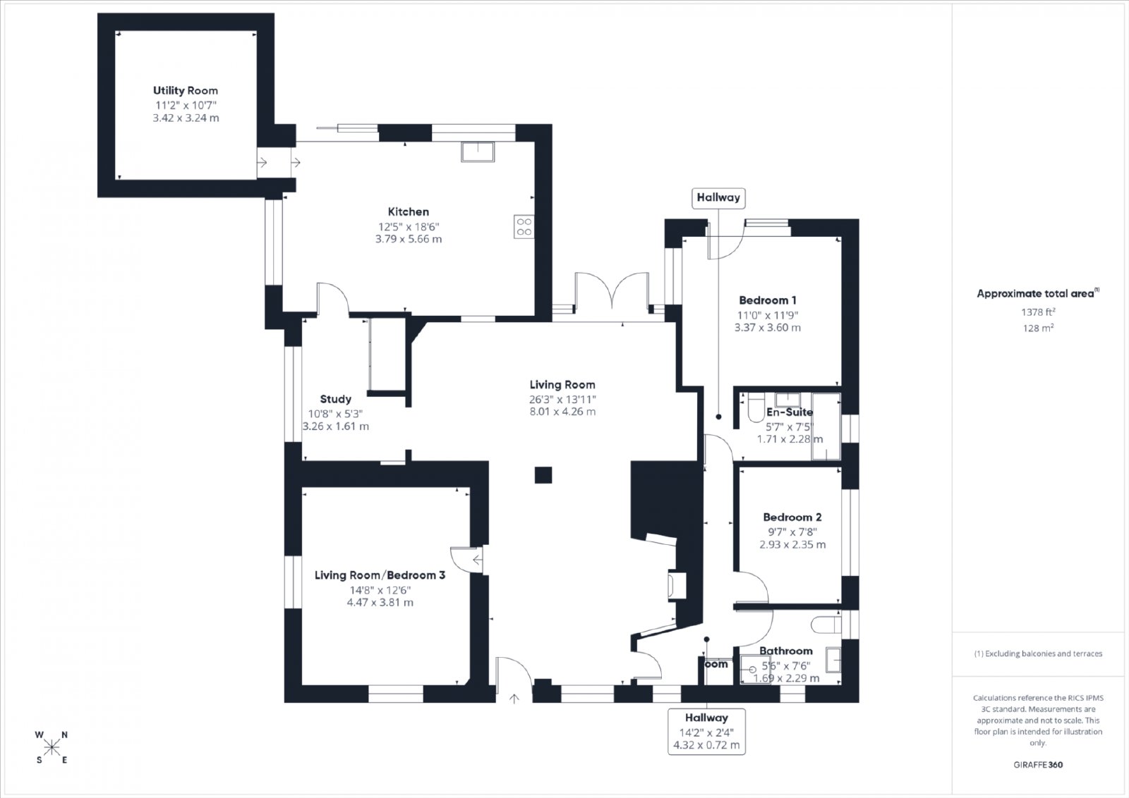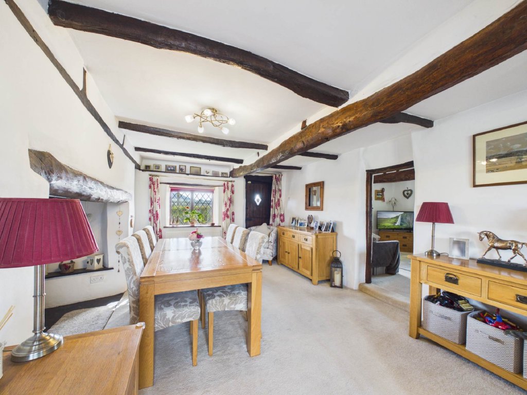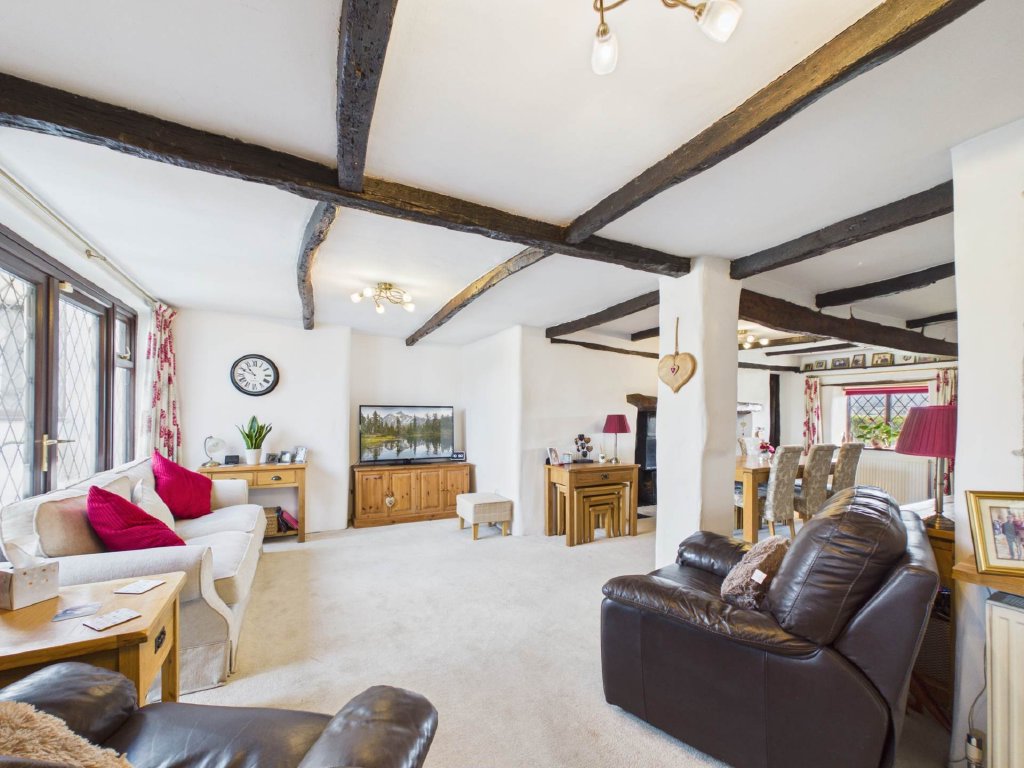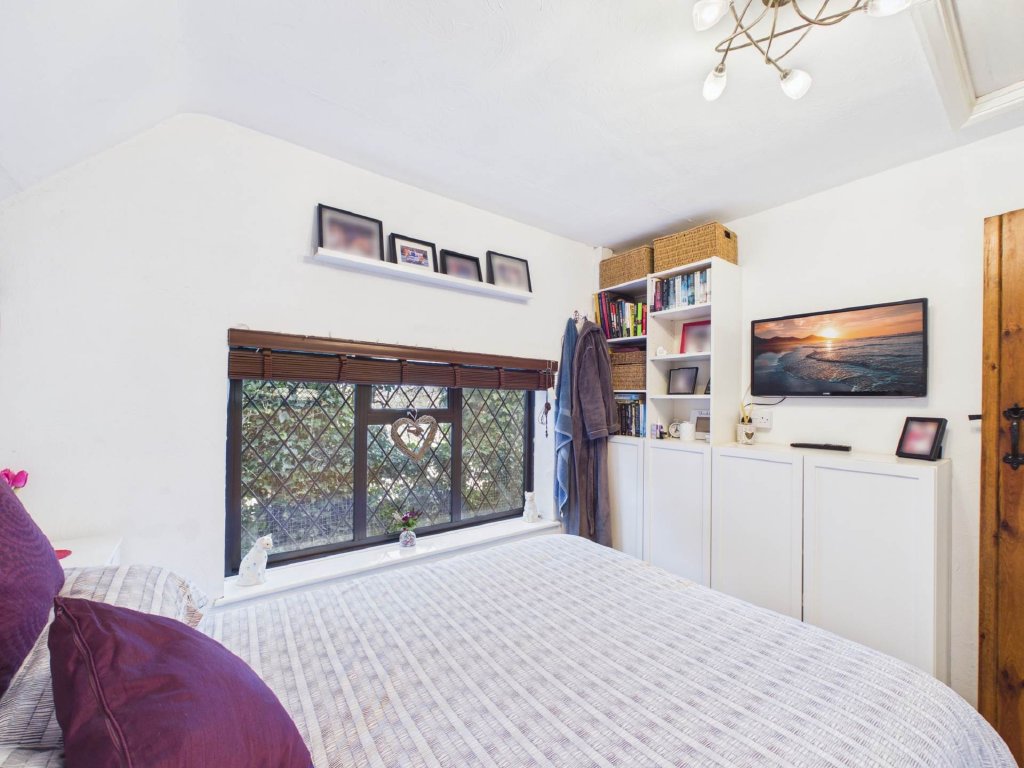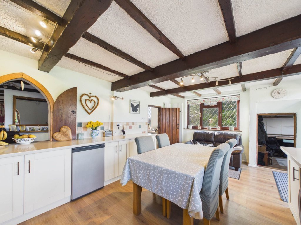 The accommodation includes a bright kitchen/dining room, ideal for everyday living and entertaining, along with a separate utility room and a study with built-in storage, perfect for working from home. The generous open-plan living and dining room features a inglenook fireplace, creating a warm and welcoming focal point. The principal bedroom enjoys direct access to the garden and benefits from an en-suite bathroom. There is a further double bedroom, a well-appointed shower room, and third bedroom which is currently being used as a snug.