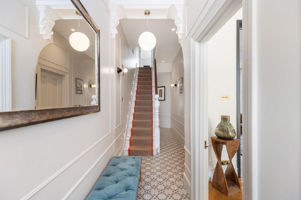 The upper floors offer an outstanding principal bedroom with generous built-in wardrobes, alongside three further well-proportioned double bedrooms and a stylish family bathroom, all finished to an exacting standard.