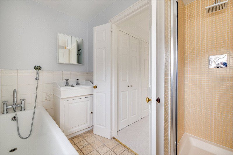 The first floor presents three double bedrooms. The principal bedroom located at the front of the property boasts high ceilings, a large bay window and built-in wardrobes that lead through to an en-suite bathroom with a separate shower. A further two bedrooms are found at the back of the property and are both served by a family style bathroom. There is a large and very useful loft space with easy access located from the first floor landing.