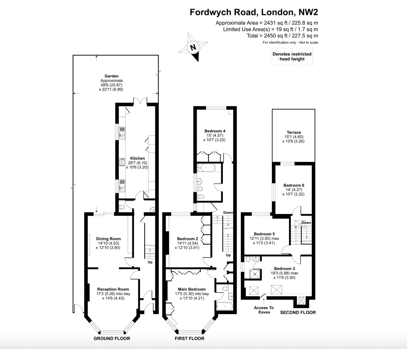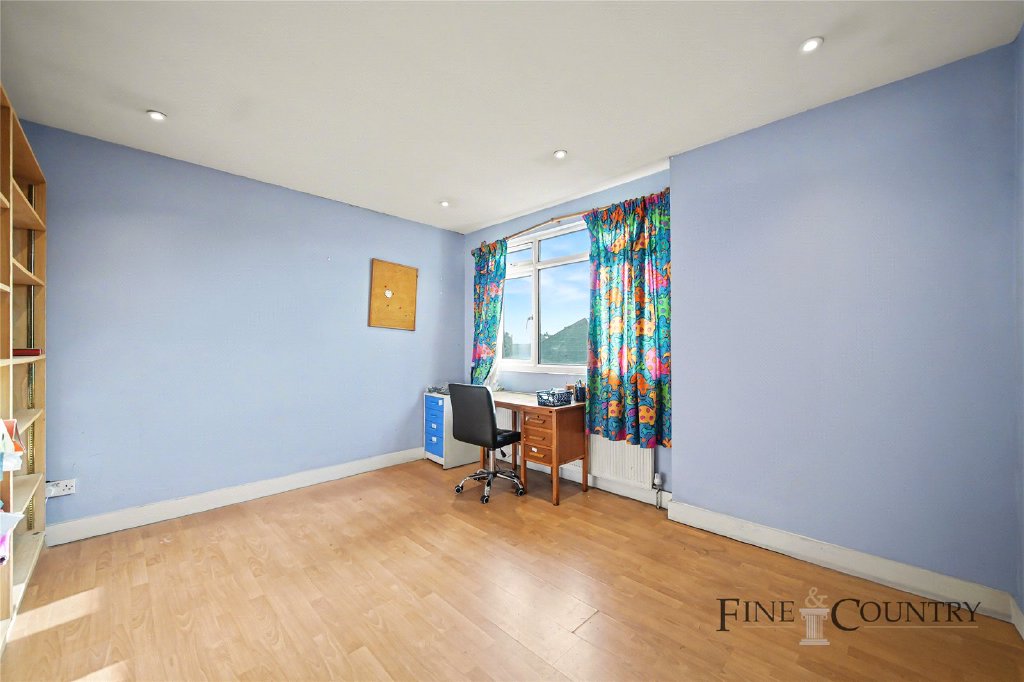 Set on the tree-lined stretch of Fordwych Road, this substantial semi-detached house unfolds across three storeys and approximately 2,450 sq ft of internal space. The plan balances generous reception rooms with six bedrooms and three bathrooms, creating a layout well suited to family living. Large windows draw natural light throughout the interiors, while a long private garden extends from the rear of the house, establishing a strong connection between the living spaces and the outdoors. A roof terrace on the upper floor offers elevated views across the surrounding neighbourhood, and off-street parking to the front completes a rare combination of space and practicality in this part of north-west London.