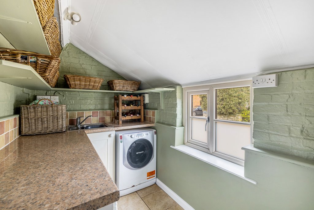• Separate tiled utility room with space for three appliances and generous storage