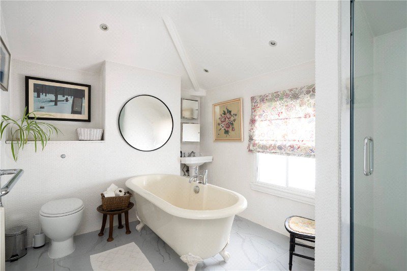 All the bedrooms are generously sized and benefit from original deep skirting and cornicing. Two of the bedrooms benefit from stylish ensuite bathrooms, and the principal bedroom has a polished cast iron bath and walk in shower.