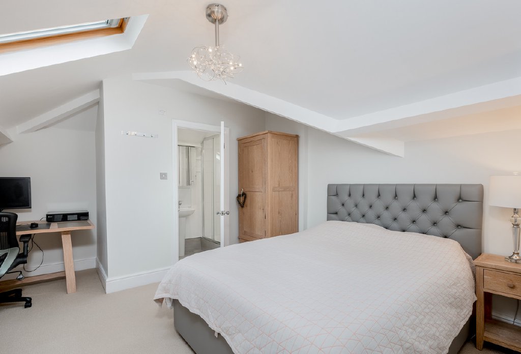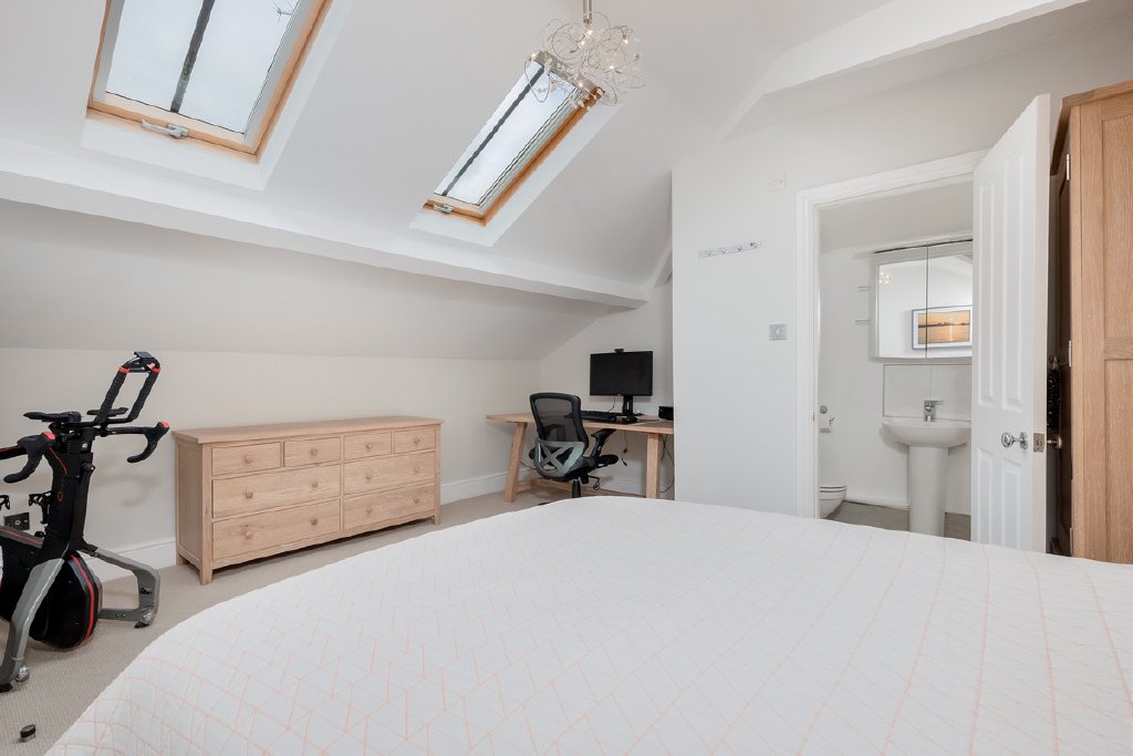 The second floor provides two further double bedrooms, both benefiting from skylights that flood the rooms with natural light and create a bright, airy atmosphere with the larger of the two also boasting an ensuite shower room.