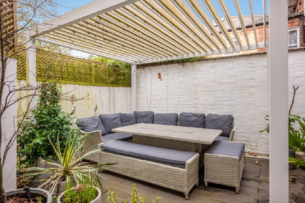 To the rear of the property is a delightful courtyard garden, designed for low maintenance and outdoor entertaining with a covered pergola seating area providing the perfect space for al fresco dining or relaxing with friends and family all year round.