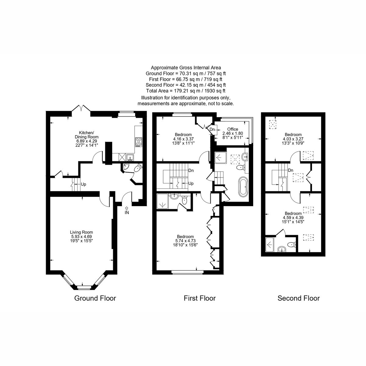 The first floor offers two generous double bedrooms together with a family bathroom and an additional office space.