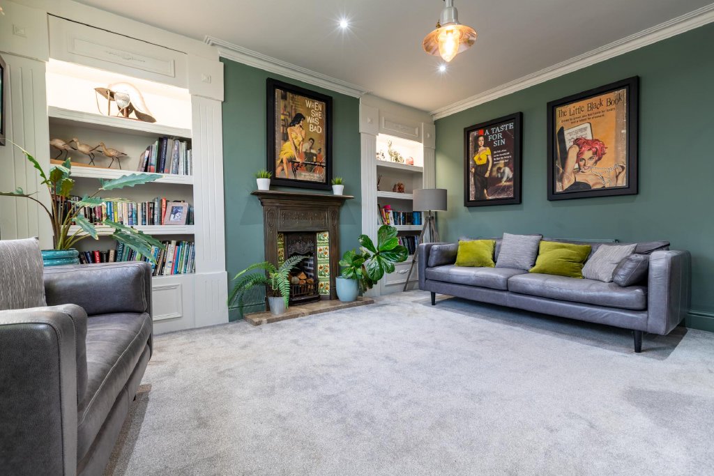 The formal front entrance leads through an internal porch into a welcoming lobby, which in turn provides access to two reception rooms, both enjoying large bay windows overlooking the front of the property. The lounge is a particularly charming space, featuring a striking iron fire surround set upon a stone hearth, creating an elegant centrepiece to the room. Positioned on the opposite side of the lobby is the other reception room, currently utilised as an informal dining and entertaining space, also benefits from an attractive fireplace and hearth, adding further character and warmth.