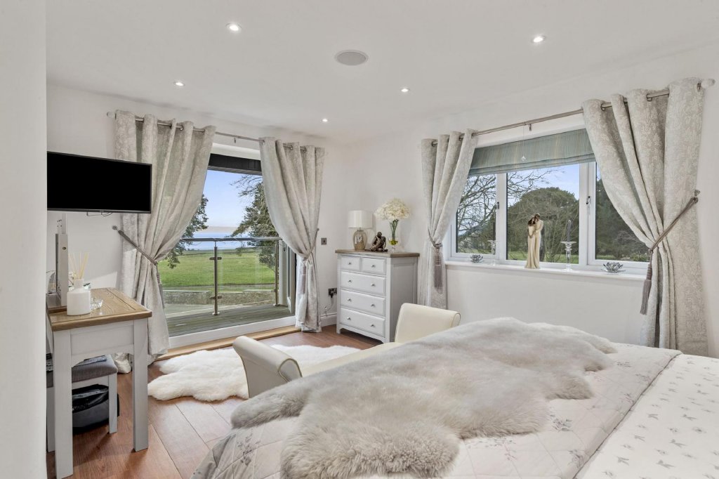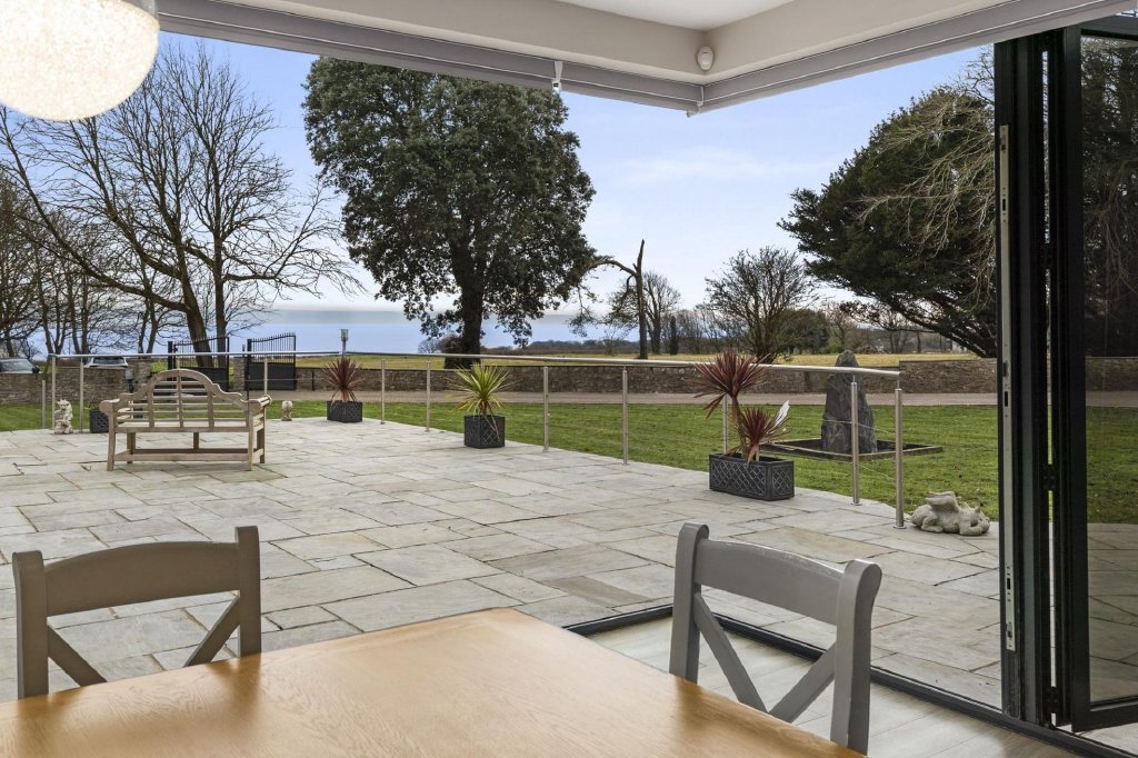 Upon entering the property, you are greeted by a grand entrance lobby, complete with a central oak staircase leading to the first floor. The open-plan living space forms the heart of the home, where a stunning kitchen with quartz countertops, integrated Neff appliances, and a massive island seamlessly flows into the expansive dining and living areas. Bi-fold doors open up to the front and side terraces, allowing natural light to flood the space and showcasing breathtaking sea views across the Bristol Channel. Each of the six bedrooms is generously proportioned, featuring modern en-suite bathrooms, with the master suite occupying its own private wing complete with dressing room and sitting area. The property also offers a dedicated study and multiple reception rooms, all designed with a focus on comfort, luxury, and functionality.