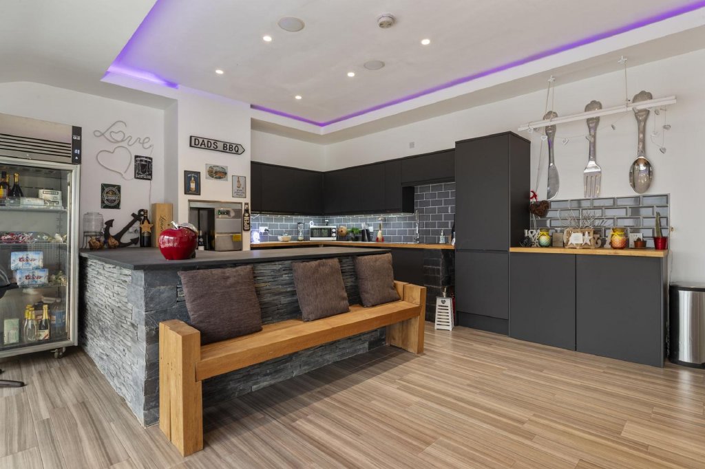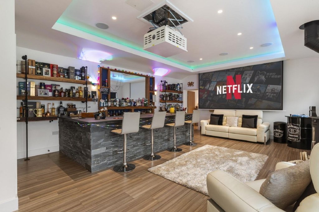 My personal retreat is the bar area, where I love to unwind, watch the rugby on the projector, and enjoy my collection of whiskey, proudly displayed. This space has been at the heart of many memorable gatherings, from Christmas celebrations to milestone birthdaysincluding my 50thas well as our wedding, making this home forever special to us. The generous space allowed us to set up marquees for large celebrations, ensuring plenty of room for friends and family to come together.