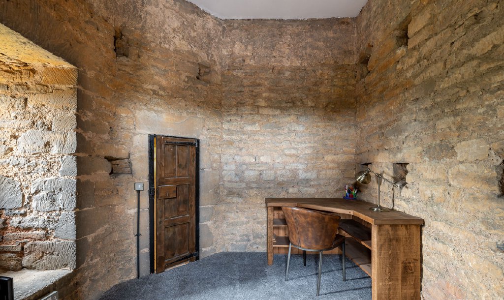 The chancel is now the primary bedroom, with an elevated area that was once the altar, it also houses the two stunning Montagu monuments. Imagine waking up in surroundings as impressive as this. Bedrooms two and three run alongside the main living space, bedroom four is in the bell tower, and there are two further rooms as you travel up the spiral staircase to the top. The lower of these rooms is set up as an office, private and secluded for working away in peace.