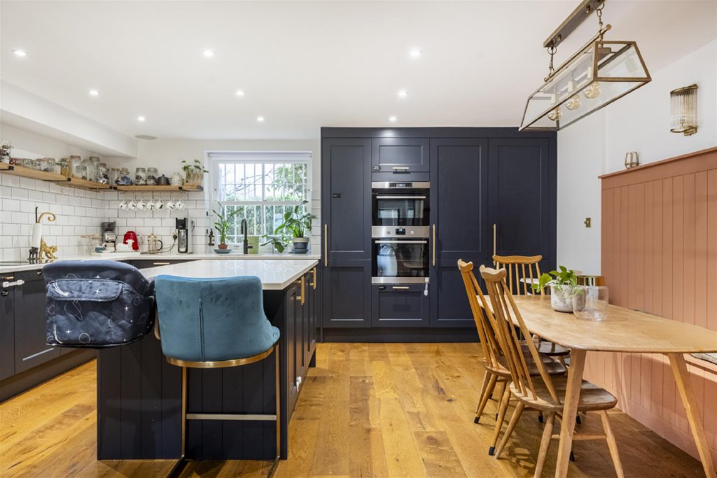 The home offers generous living space, including a bright double reception room and a spacious kitchen and dining area overlooking the garden. Five bedrooms across the upper floors provide flexible family accommodation, guest space or home offices.