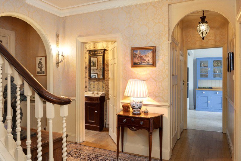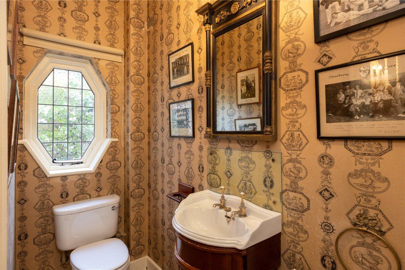 To the rear, the property boasts a magnificent south-facing garden measuring approximately 168 ft by 85 ft, landscaped by the renowned garden designers Rosemary Verey and Jane Fearnley-Whittingstall. Richly planted with mature trees and shrubs, the garden also features a fully intact icehouse and a productive kitchen garden.