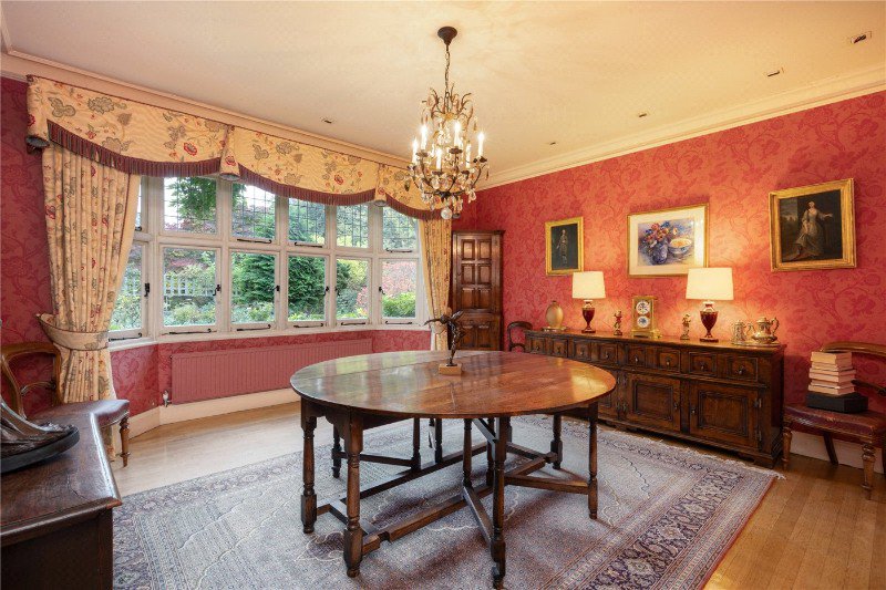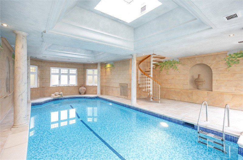 The ground floor provides excellent reception areas, including a formal dining room and a spacious sitting room that takes full advantage of the beautiful views over the mature rear garden. A well-planned kitchen, utility room and TV room complete the living space and offers potential for further extension, subject to the necessary consents. One of the standout features of the property is its private indoor heated swimming pool providing year-round enjoyment. Arranged over two floors, the first floor offers superb family accommodation. The principal bedroom includes an en-suite bathroom with direct access to the indoor swimming pool, complemented by four further bedrooms, two family bathrooms, and an additional en-suite WC. A large loft space presents a fantastic opportunity for conversion, subject to local authority approval.