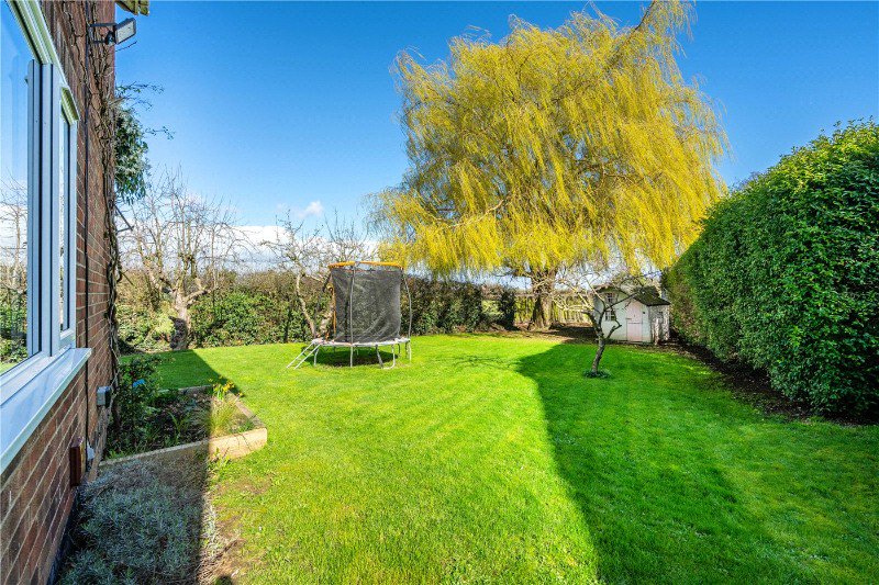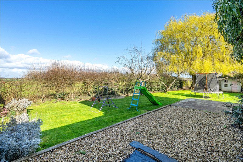Superbly located within the ever-popular village of Glinton, with Arther Mellows within a short walk away. Set on a superb corner plot, the frontage is partially enclosed by fencing and laid to gravel offering extended parking for at least two vehicles and leading to a SINGLE GARAGE with up and over door. Side gated access leads to the generous side and rear gardens mainly enclosed by mature hedging and fencing flanking open farmland on the rear boundary, large side lawns wrap around to the rear with raised gravel seating area, raised wood edged beds and mature trees.