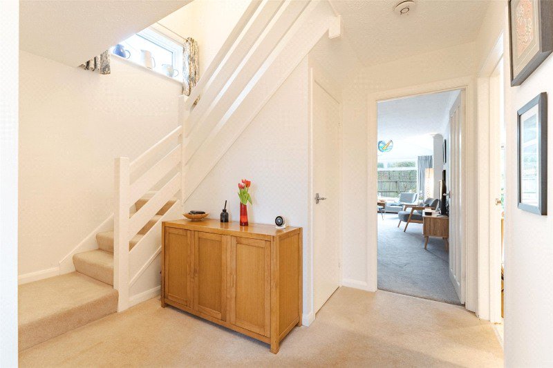 A front door leads through to the reception hall where there is an understairs storage cupboard, and a downstairs cloakroom.