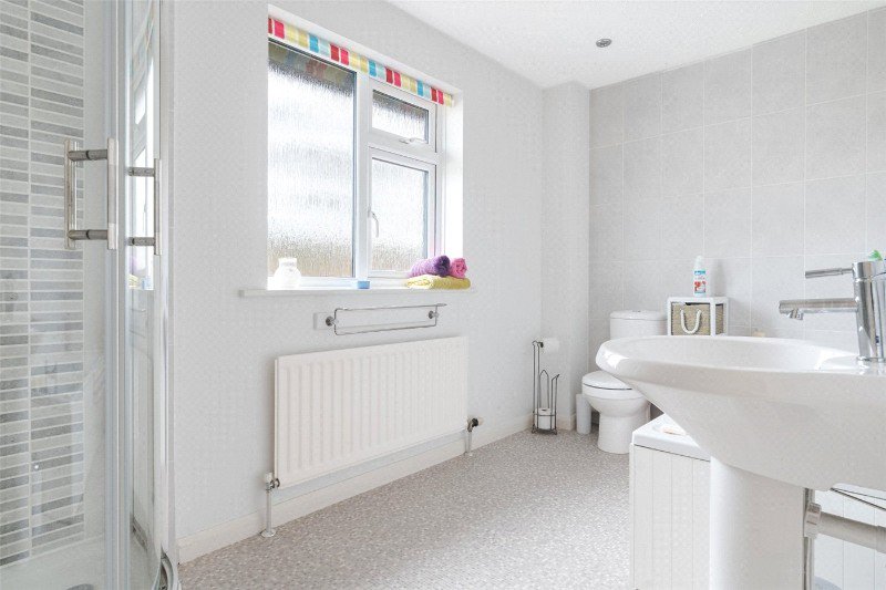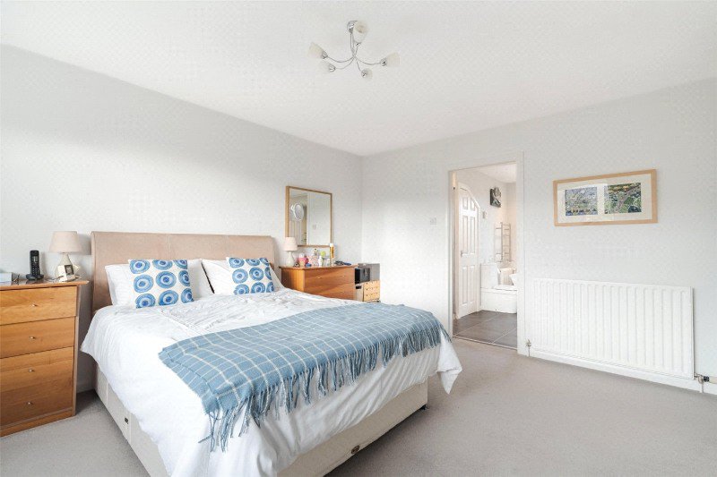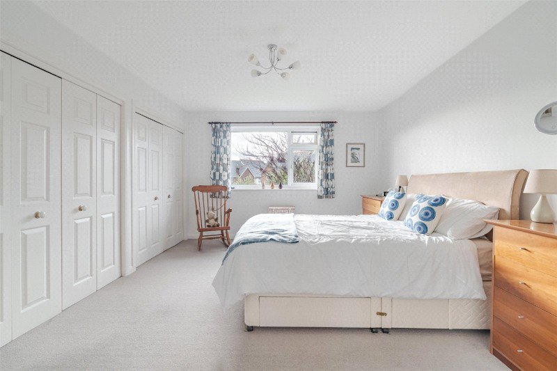 The spacious main bedroom enjoys a southerly aspect overlooking the rear garden, with 2 sets of built-in double wardrobes, and en suite bath/shower room comprising a freestanding bath (with handheld shower), separate shower cubicle, wash basin, WC, mirrored sliding wardrobes, and a built-in storage cupboard. There are 3 further bedrooms (with built-in wardrobes), and a family bath/shower room with a bath, separate corner shower cubicle, wash basin and WC.