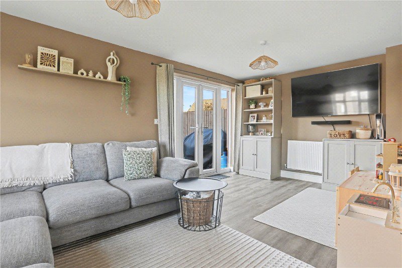 Stepping inside, the sense of care and attention given to this home is instantly apparent. The entrance hall provides space for shoes and coats and leads you through into the main living space. The lounge is a bright and inviting room, beautifully styled and designed to be both comfortable and functional, the perfect place to relax at the end of the day. French doors from the lounge open directly onto the rear garden, creating a seamless connection between indoor and outdoor living and allowing the space to truly come into its own during the warmer months.