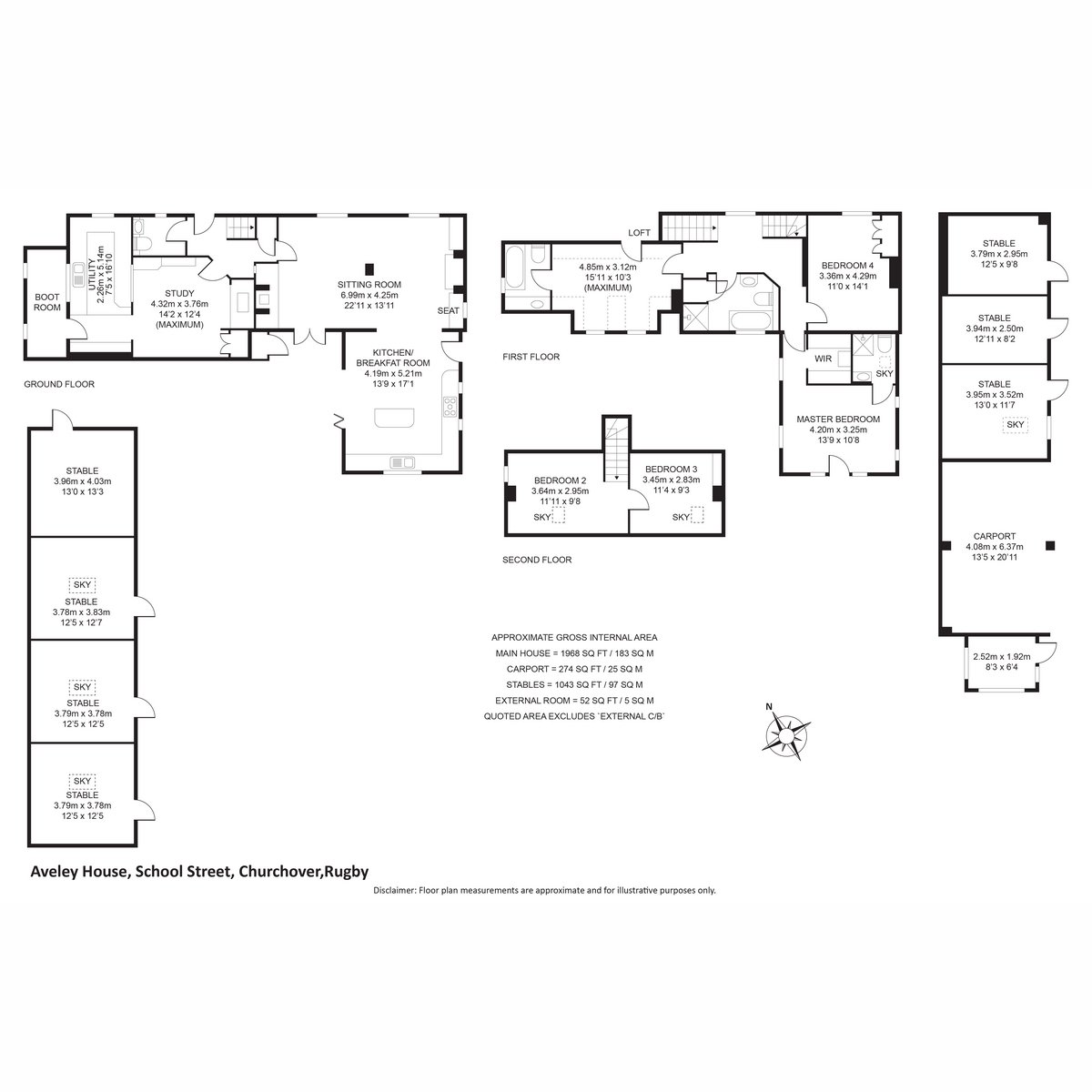 Outside, electric gates lead to extensive parking and a range of outbuildings including stables, tack room, hay barn, workshop and carport.
