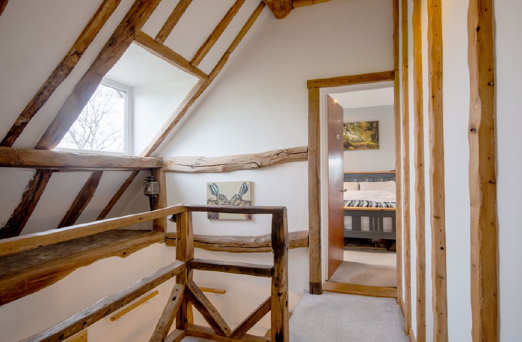 First Floor: The impressive open wooden staircase rises to the first floor, where there are four bedrooms and a separate WC.