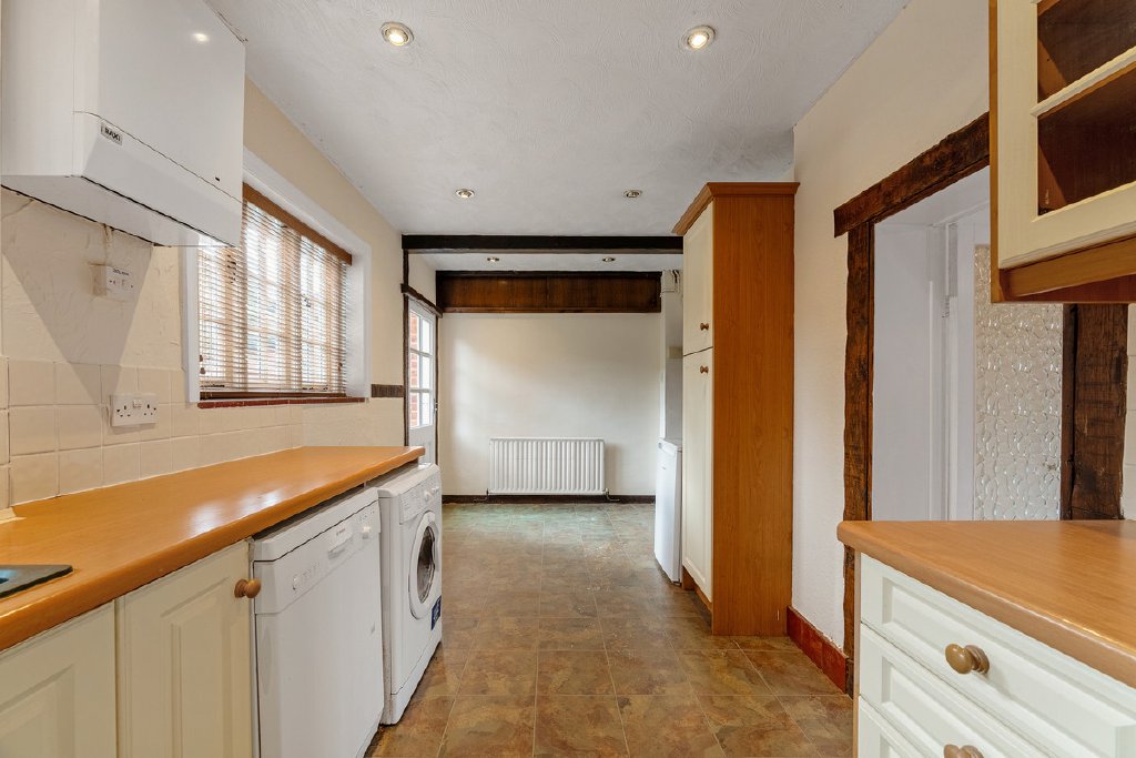 - Kitchen breakfast room overlooking the rear garden, offering scope for modernisation
