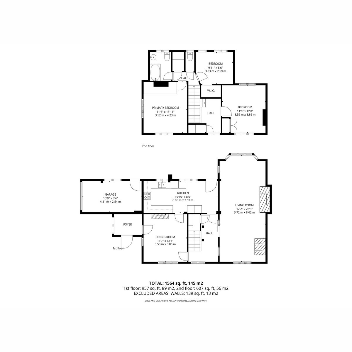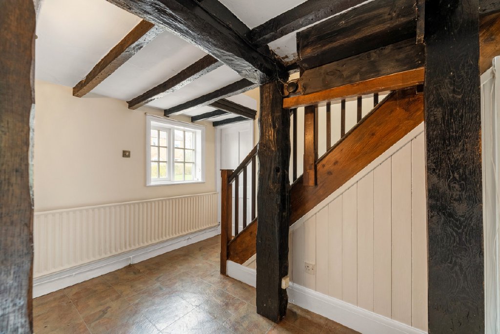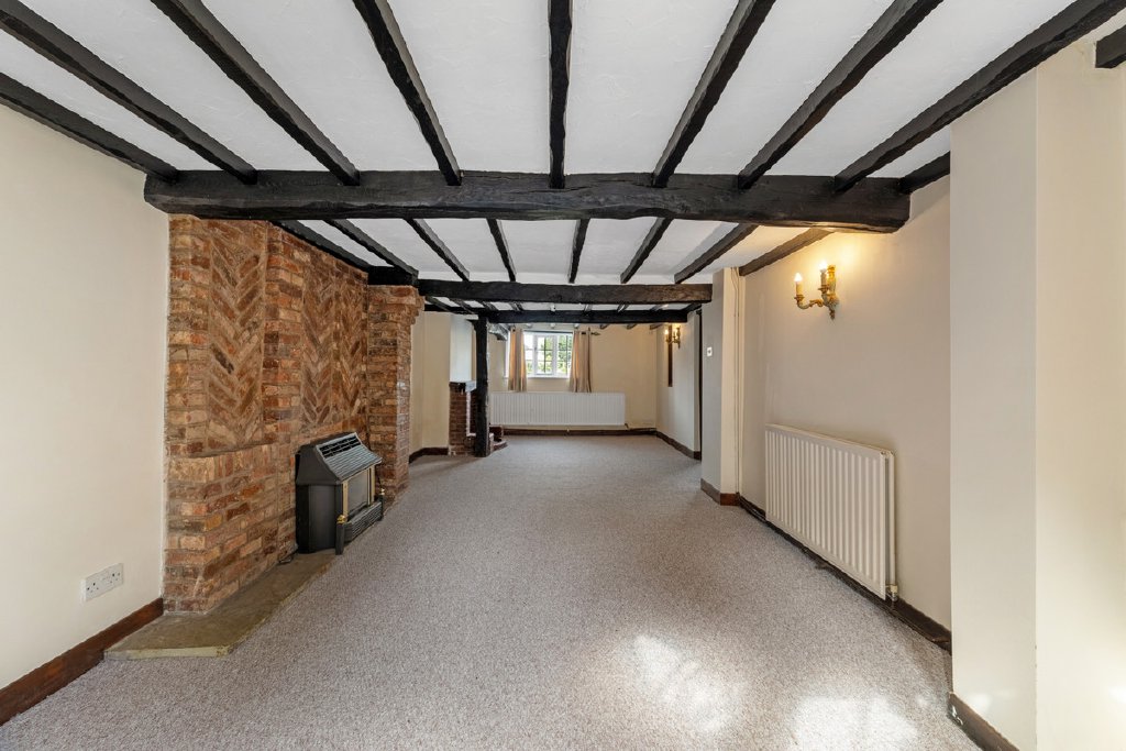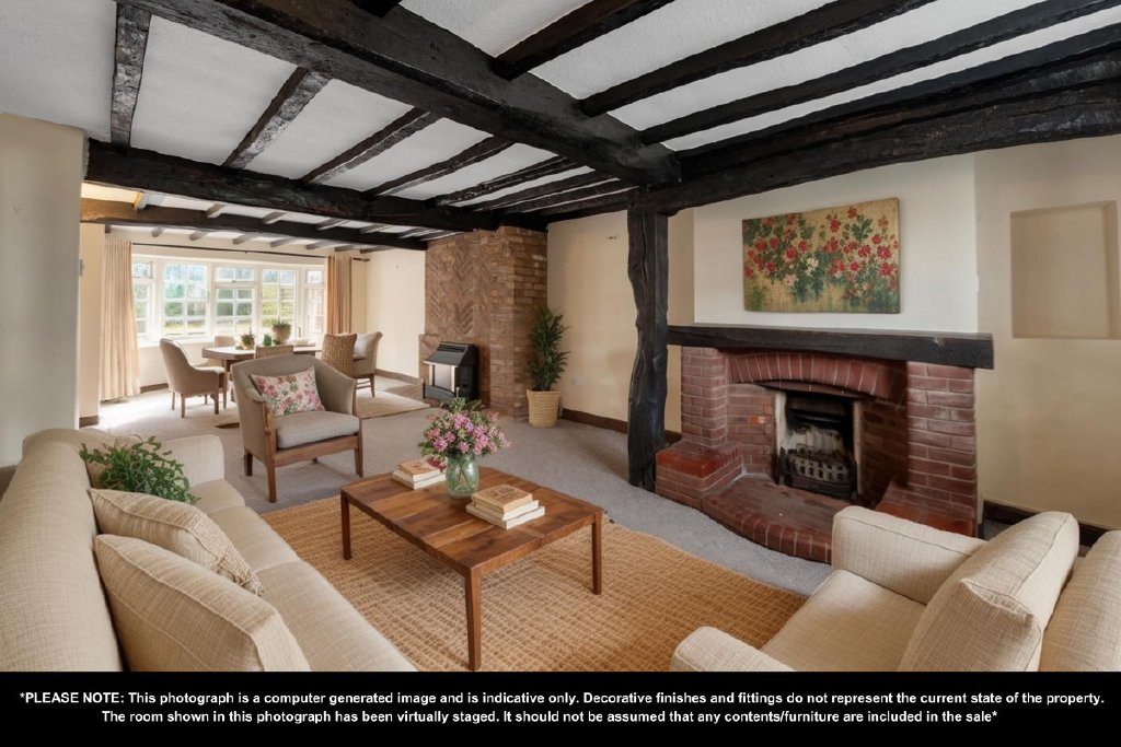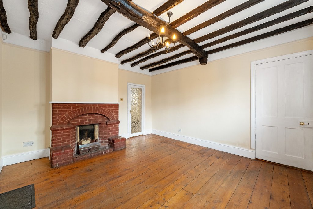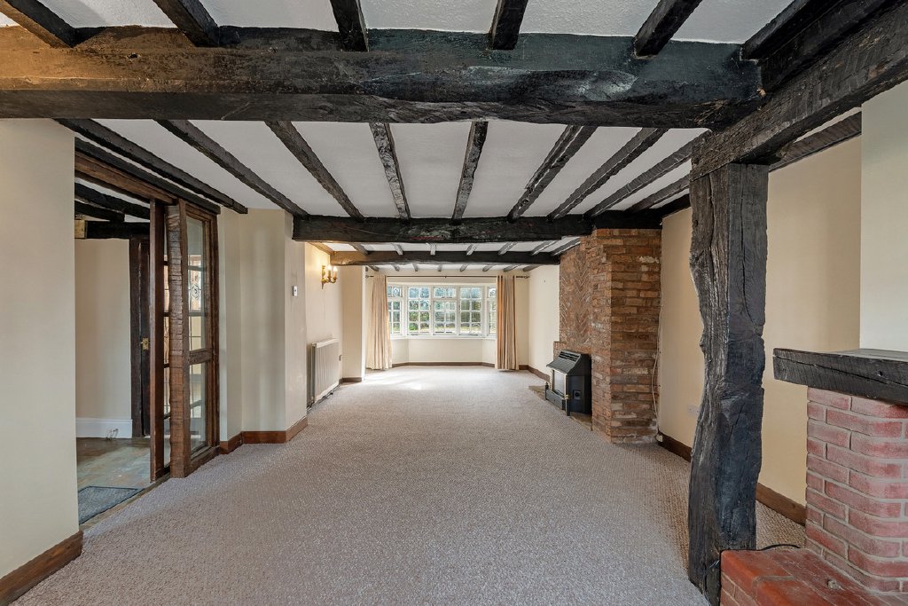 - Generous sitting room with bay window, exposed timbers and two fireplaces