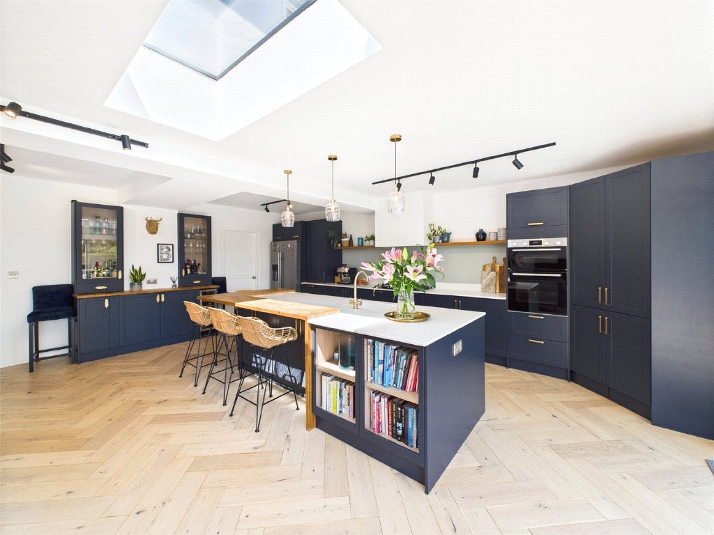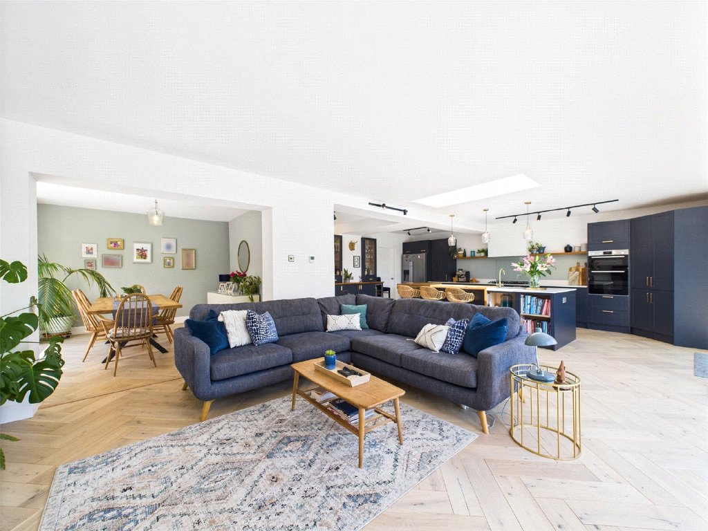The front door leads into the porch and in turn the entrance hall which has a cloakroom with wc and basin. There is a snug with a bay window to the front of the property. A key feature of this house is the open plan living area to the rear. The kitchen features a range of attractive base and eye level units with some integral appliances and an island. There are sliding doors to the rear garden and a seating area with a picture window that then leads into a dining area with double doors to the courtyard garden at the side of the property. The ground floor also features a utility room and ground floor bedroom with en suite shower.